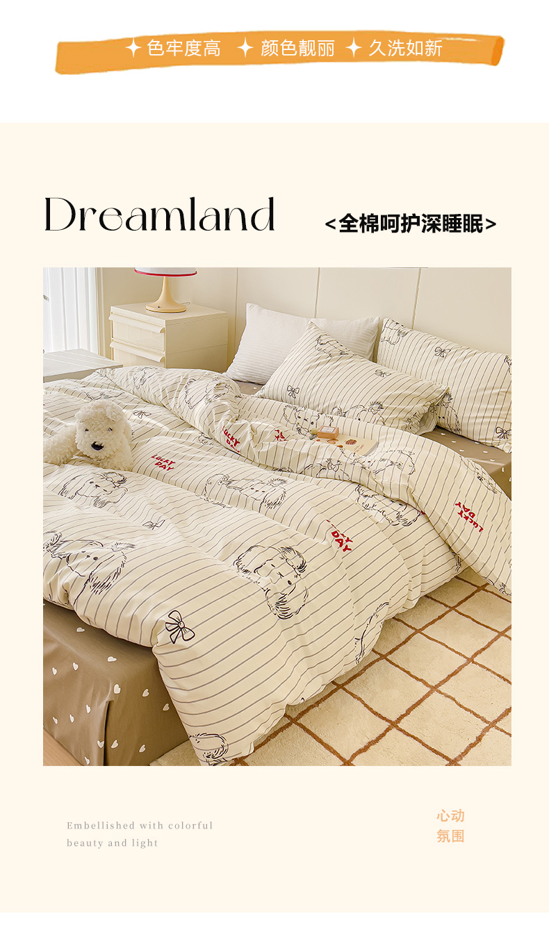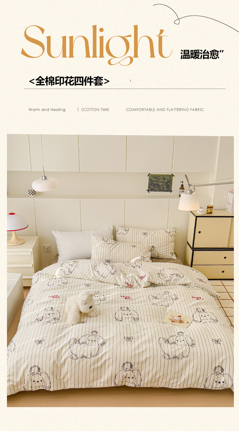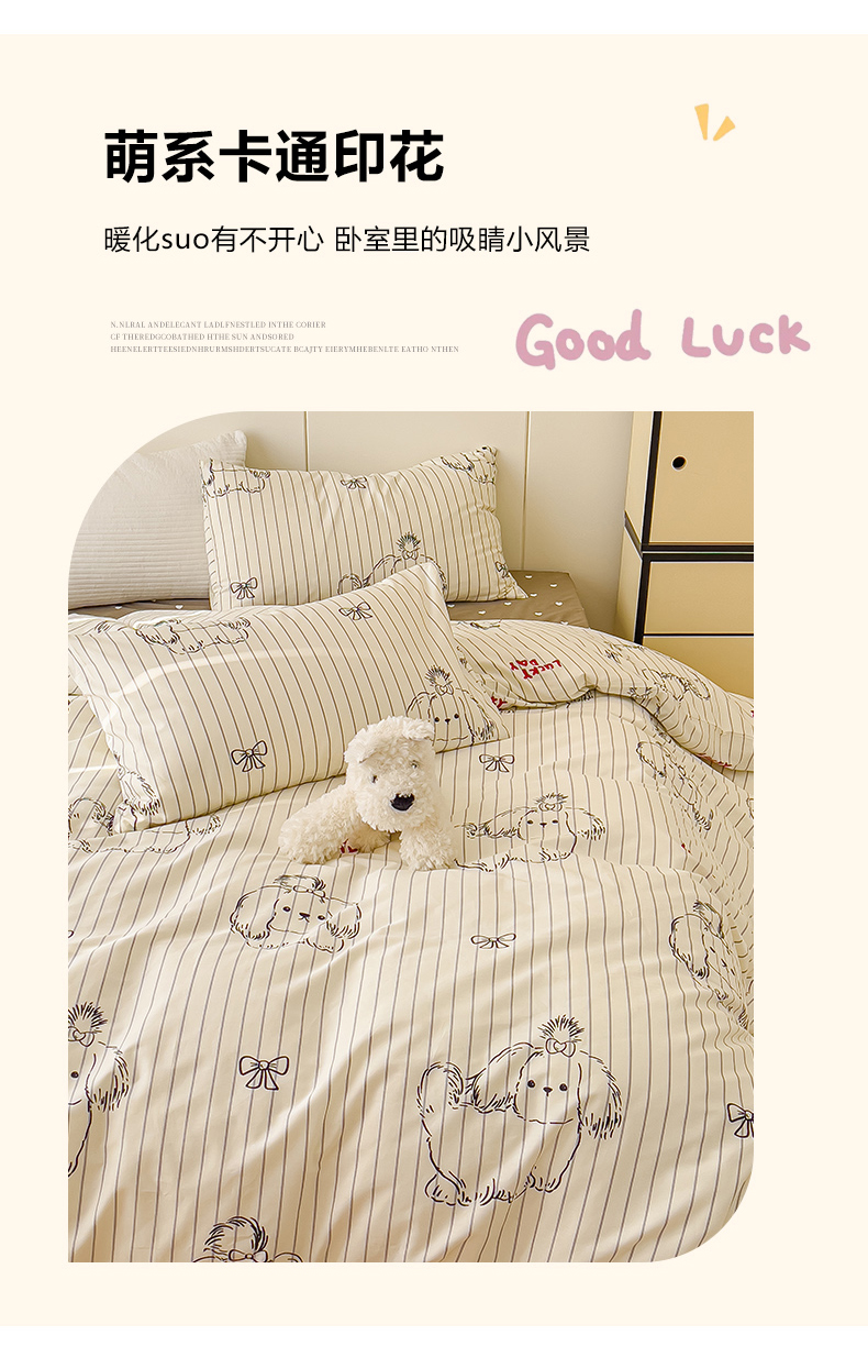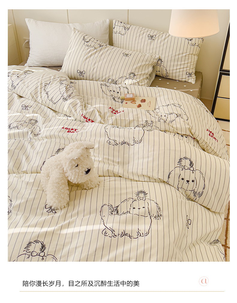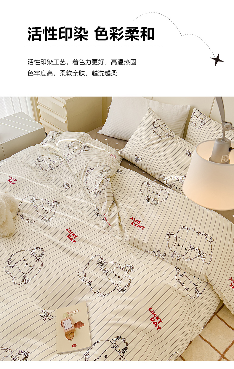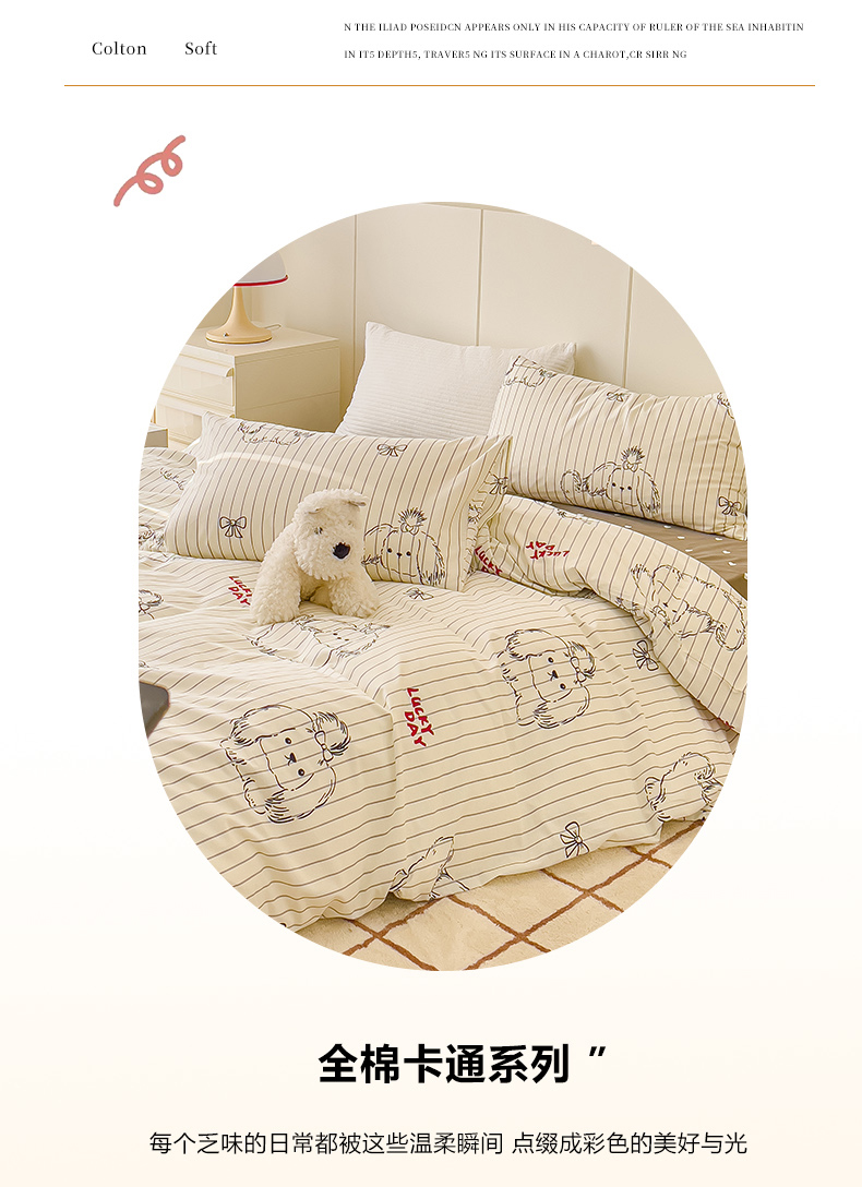 当前位置: 91家纺网 > 商品网购 > 床品套件 > 四件套 > 全棉普通四件套 > 感遇家纺 2024春夏新品全棉卡通印花四件套-第二批 大耳狗