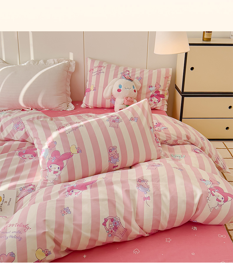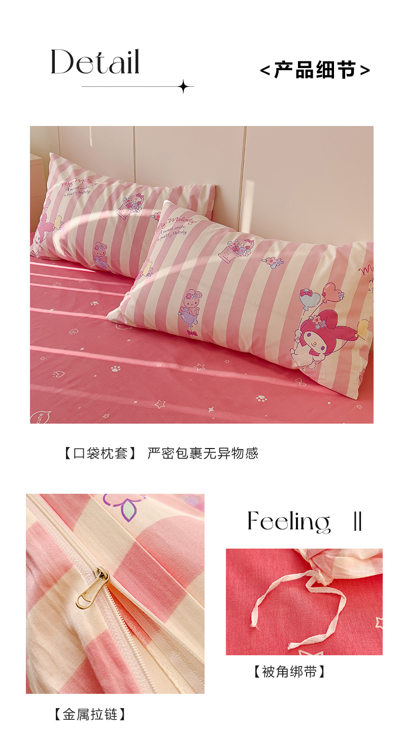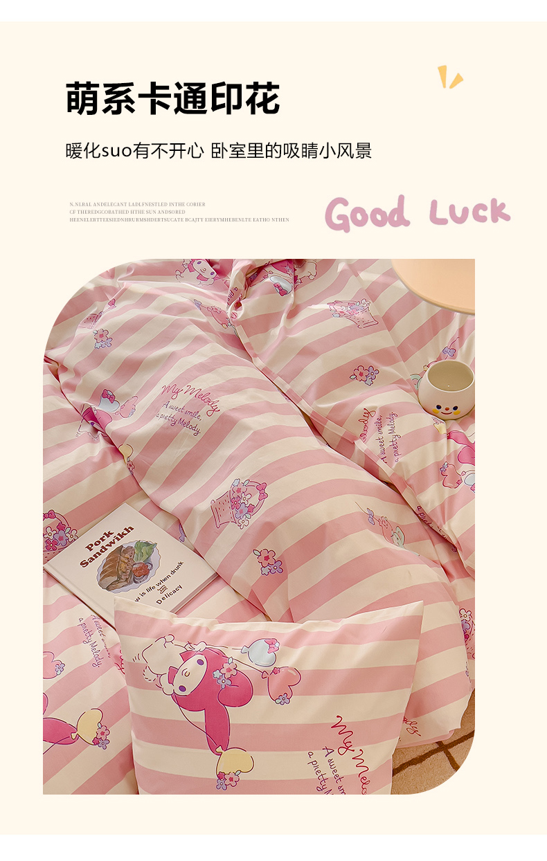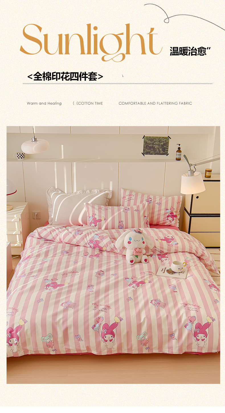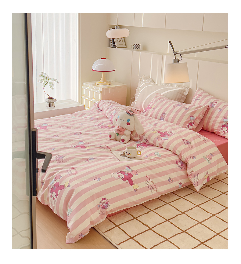当前位置: 91家纺网 > 商品网购 > 床品套件 > 四件套 > 全棉普通四件套 > 感遇家纺 2024春夏新品全棉卡通印花四件套-第二批 条纹美乐蒂