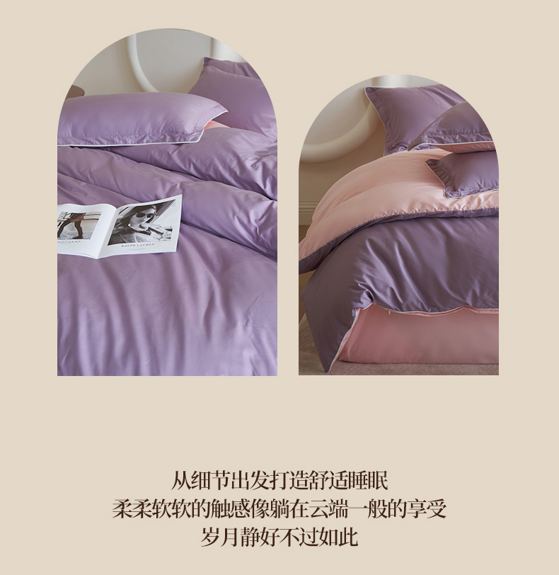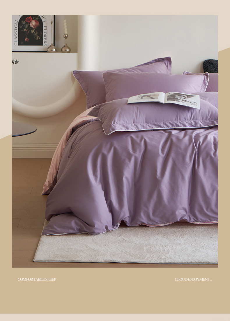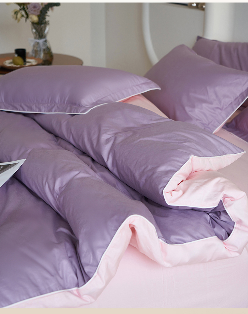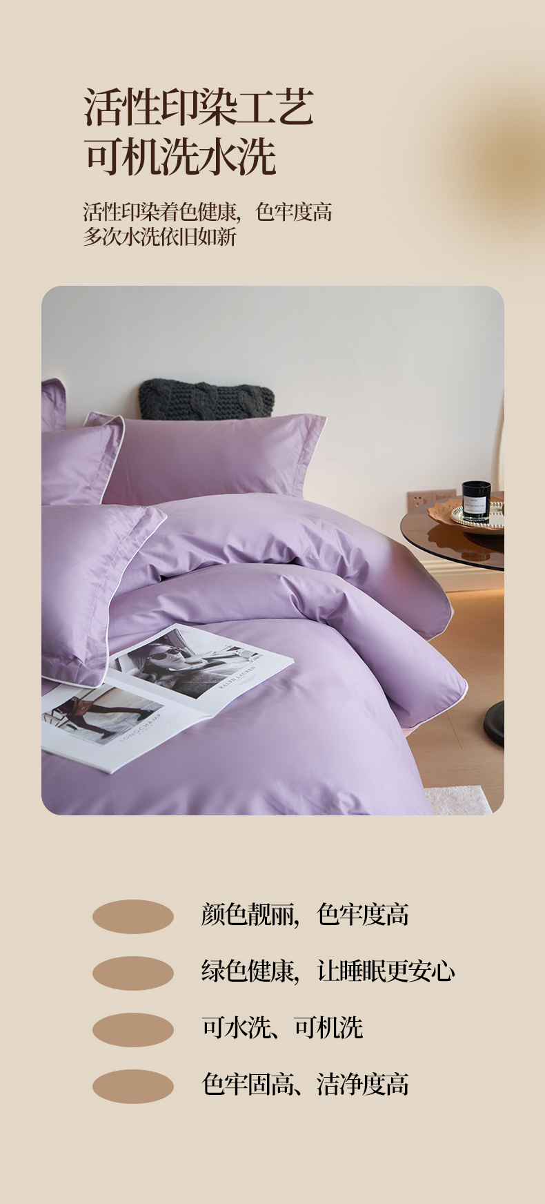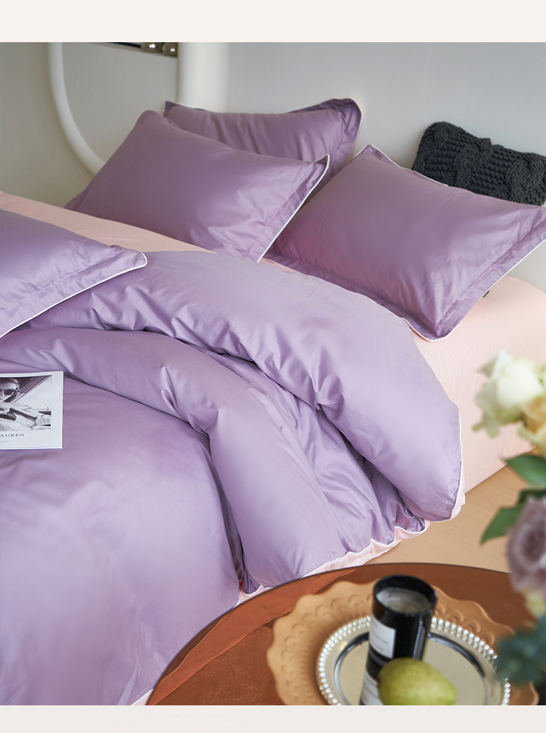 商品名称:盛馨 2024新款40长绒棉美拉德色系纯色双拼全棉四件套纯棉三件套床笠套件 风信紫