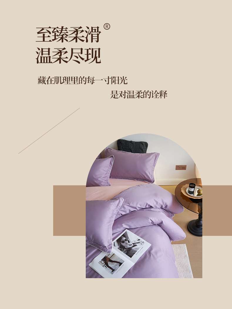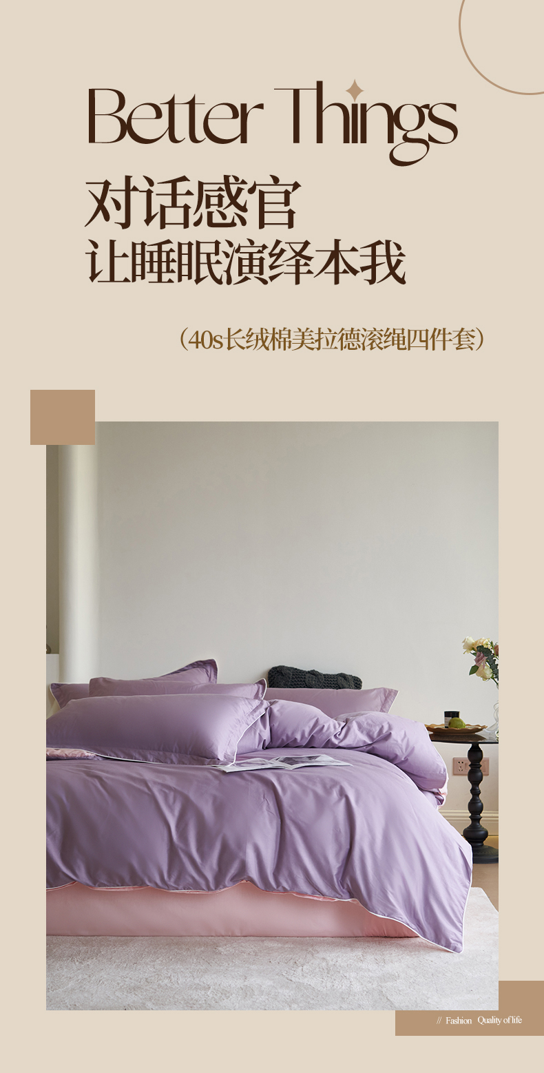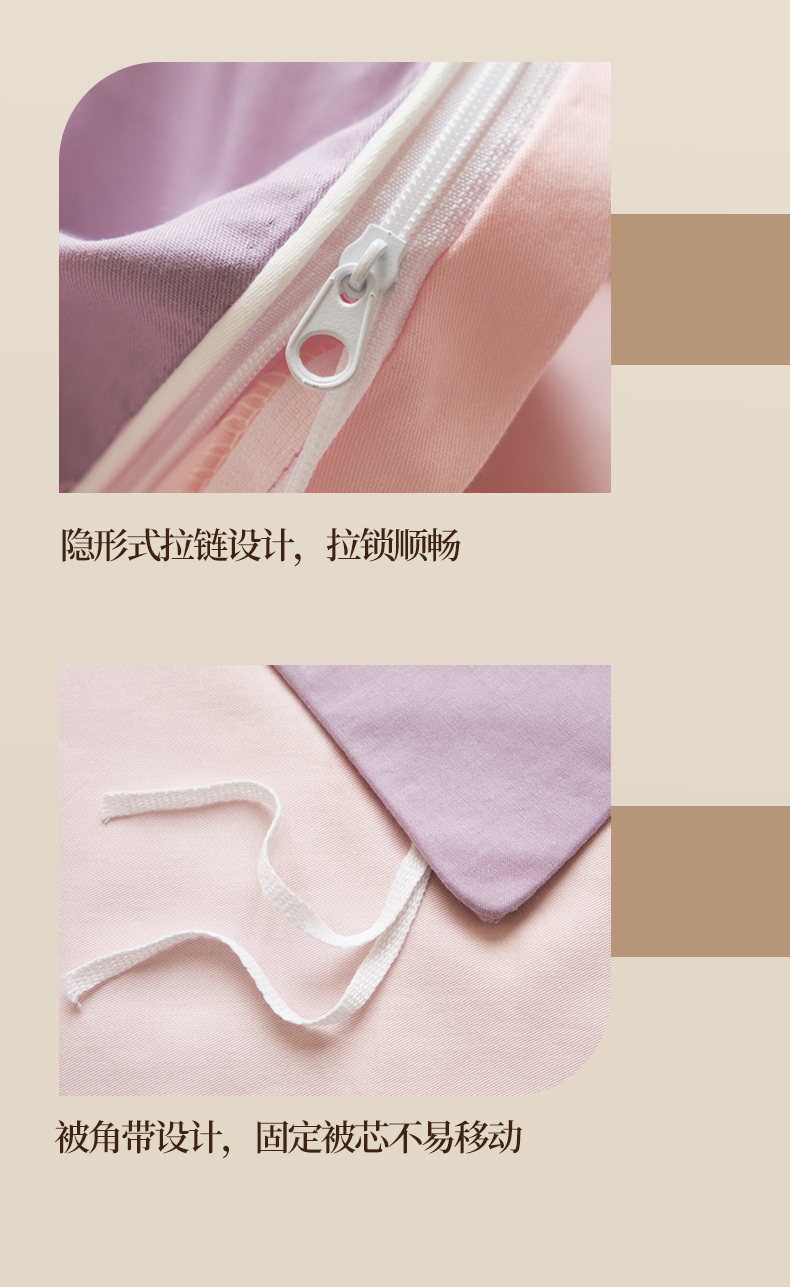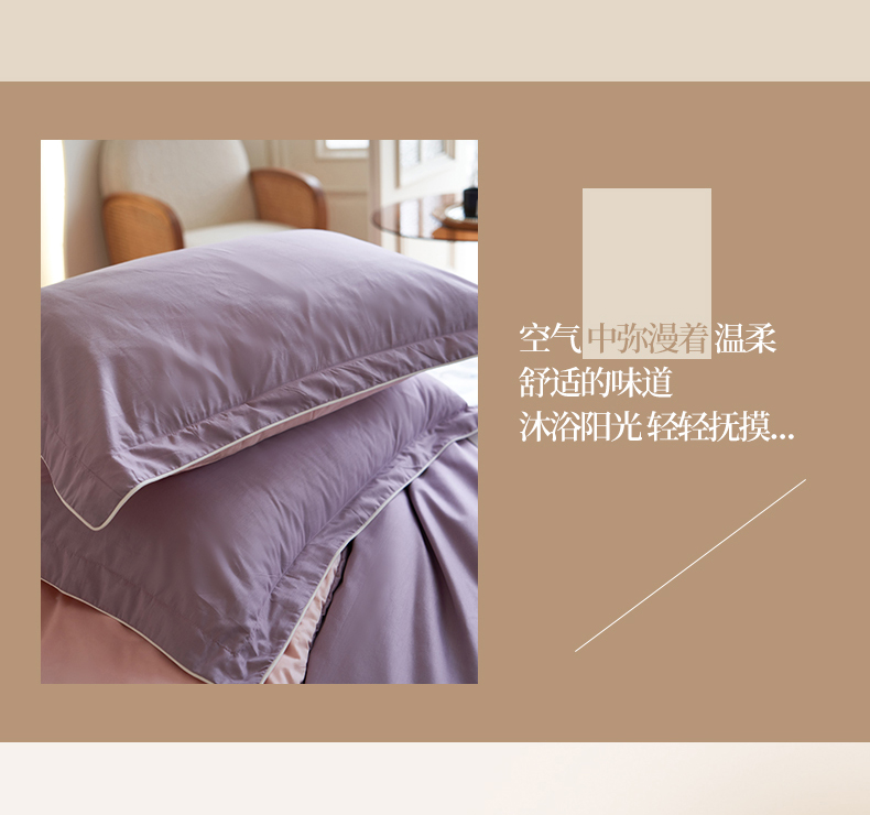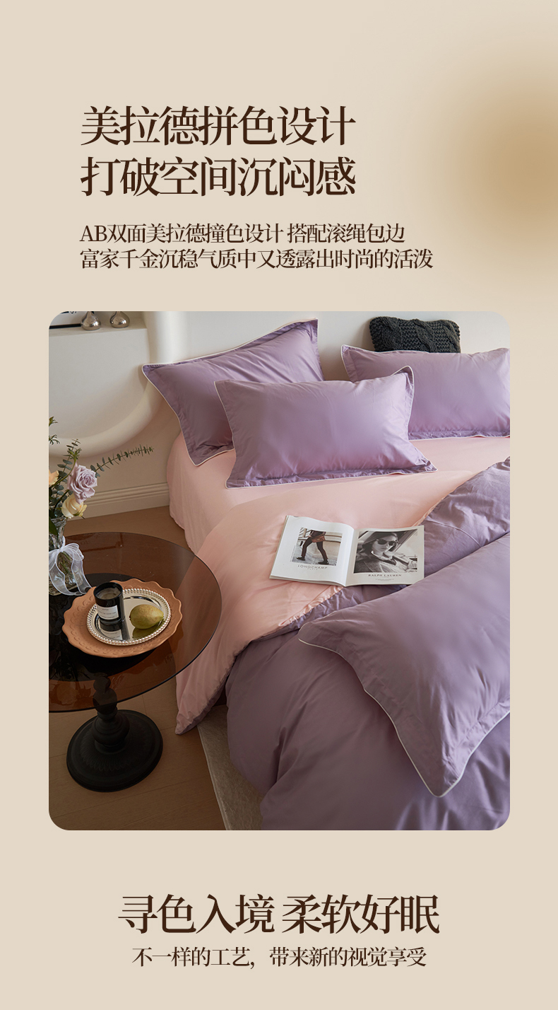 商品名称:盛馨 2024新款40长绒棉美拉德色系纯色双拼全棉四件套纯棉三件套床笠套件 风信紫