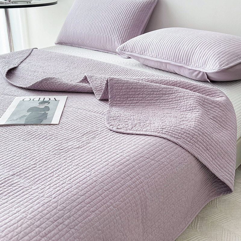 茉夕家纺 2024新款双面纯棉纯色棉花床盖 棉棉紫