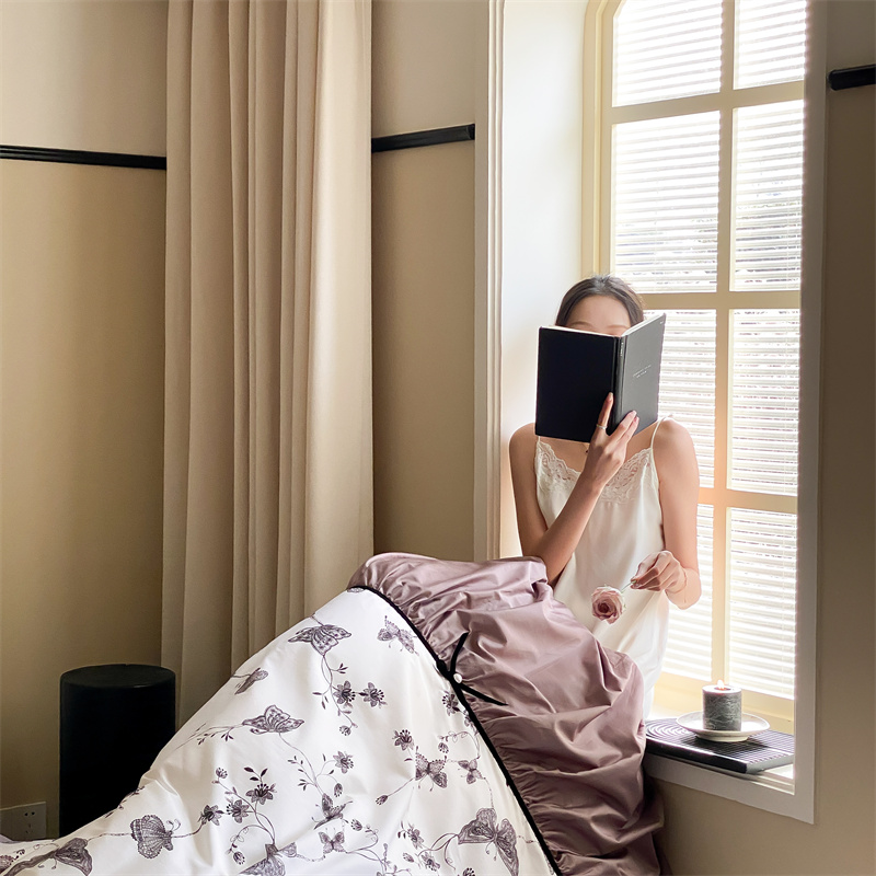 (总)优然居家纺 2025新款50支全棉纯棉印花法式双头木耳边四件套,觅棠,莫妮卡艾绿,莫妮卡罗兰,慕斯粉,薇薇安