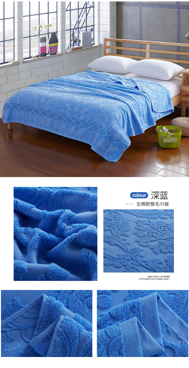 商品名称:雯雨家纺 2024老式怀旧A类纯棉毛巾被 欧典风尚-深蓝