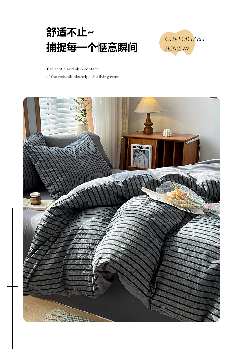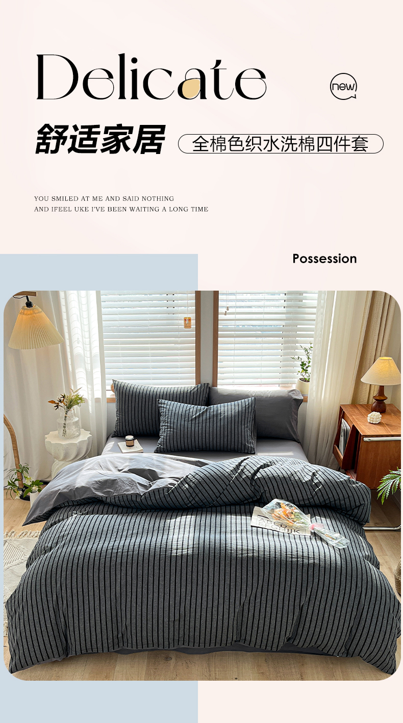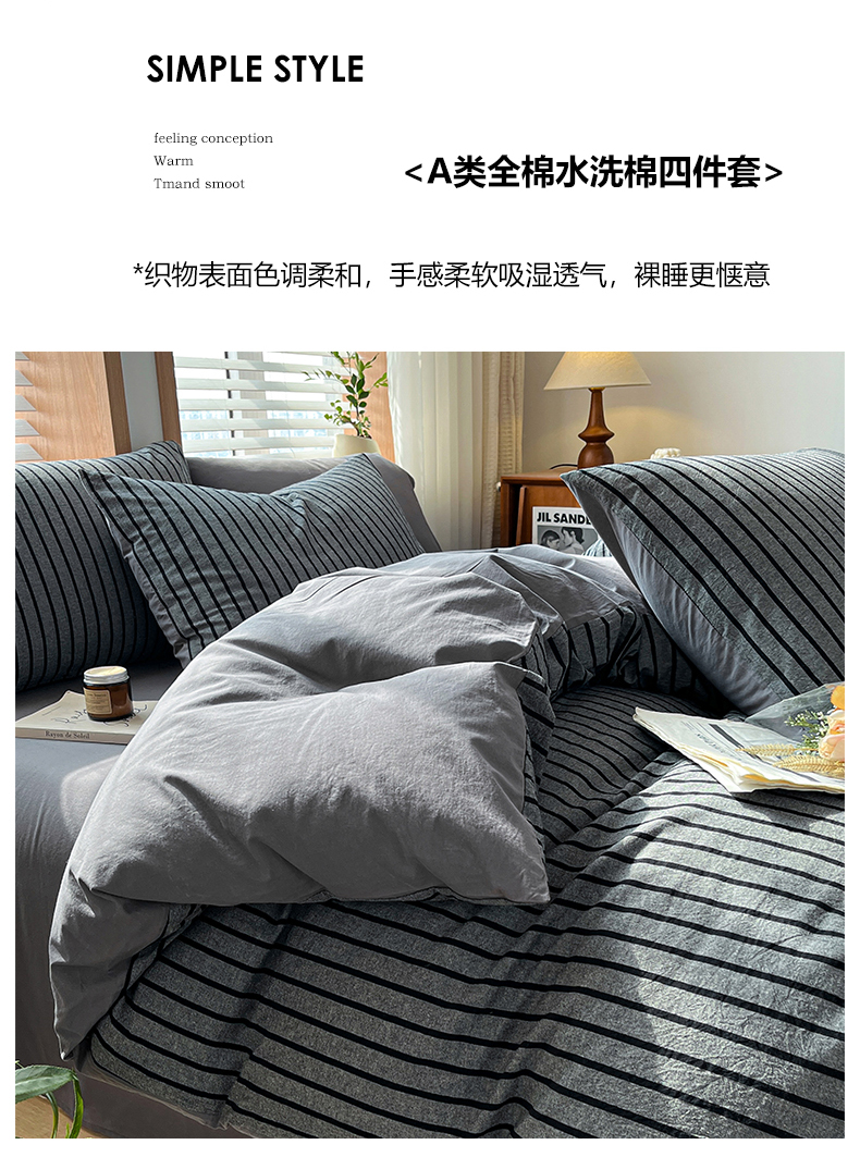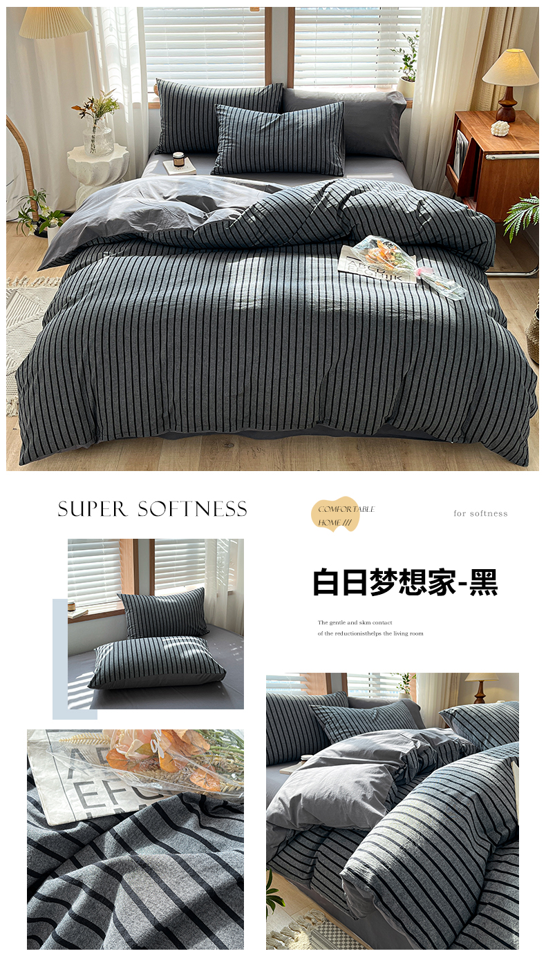 当前位置: 91家纺网 > 商品网购 > 床品套件 > 四件套 > 水洗棉四件套 > 柠萌家居 2024新款无印风A类全棉色织水洗棉四件套 白日梦想家-黑