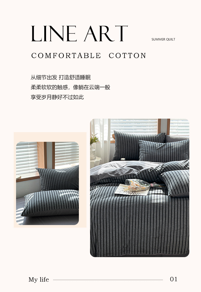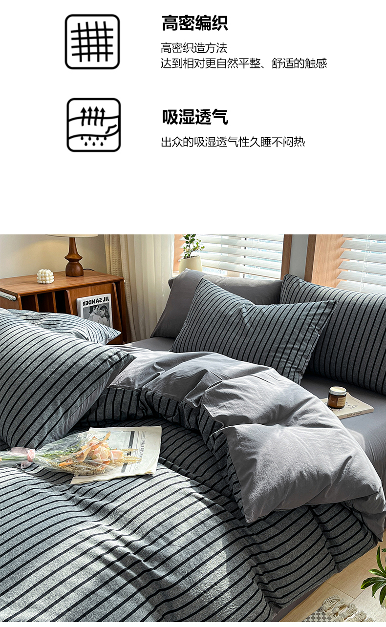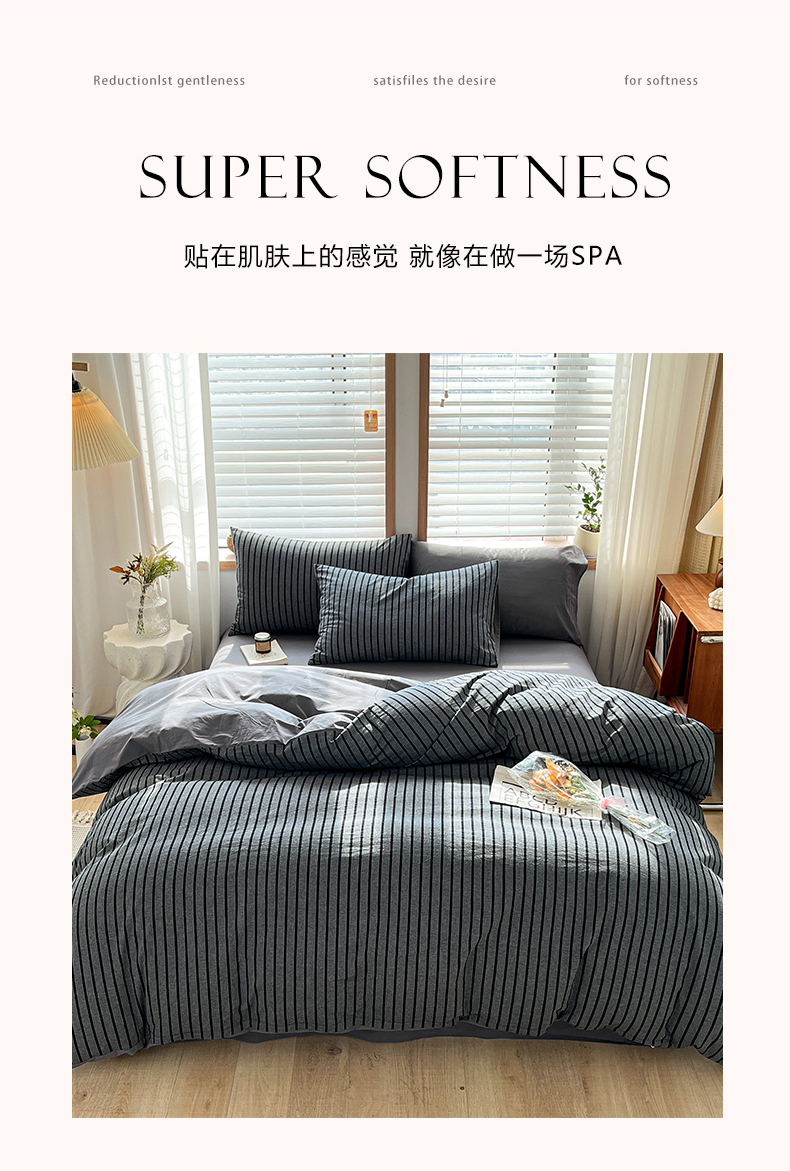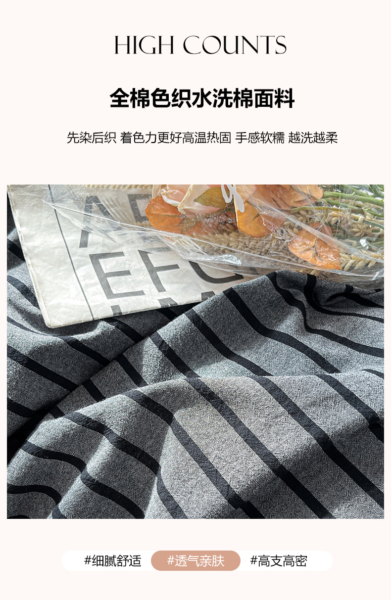 当前位置: 91家纺网 > 商品网购 > 床品套件 > 四件套 > 水洗棉四件套 > 柠萌家居 2024新款无印风A类全棉色织水洗棉四件套 白日梦想家-黑