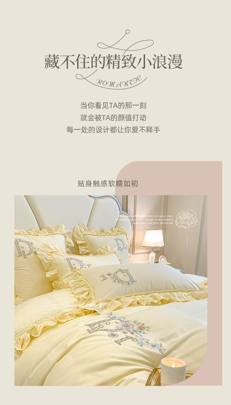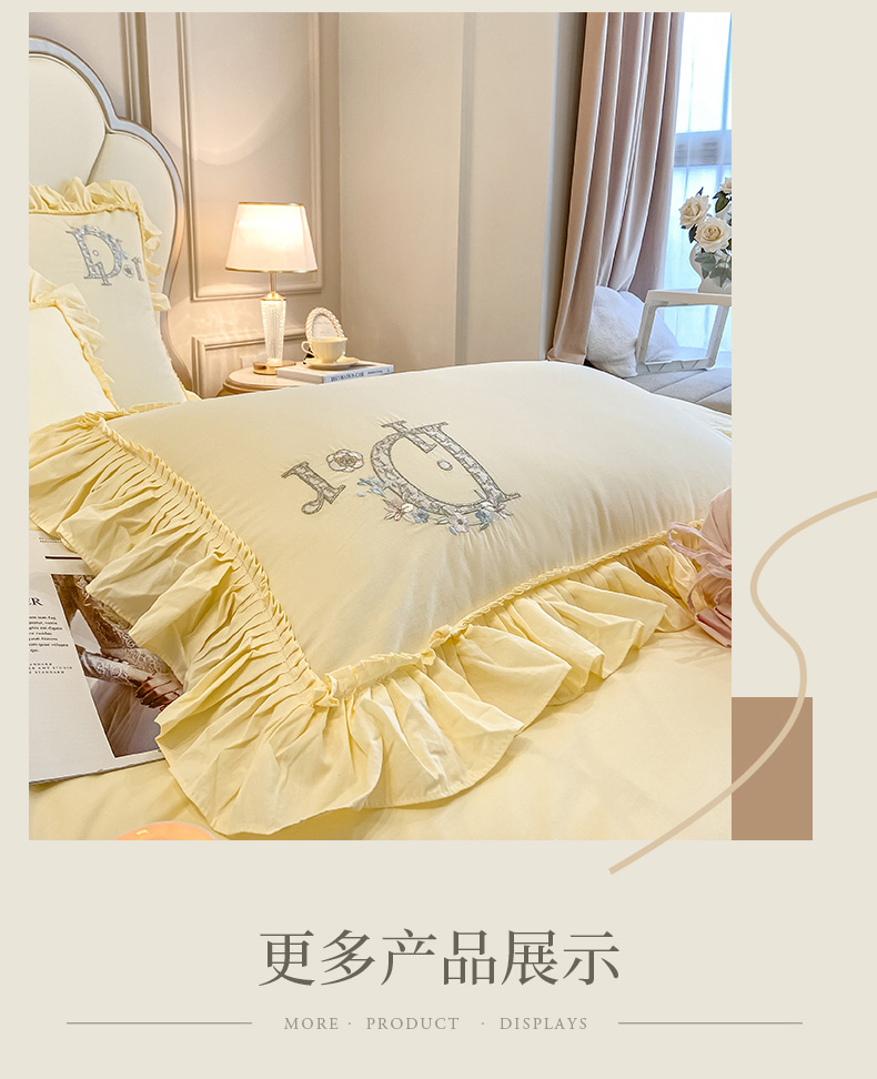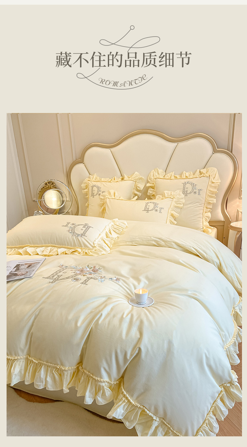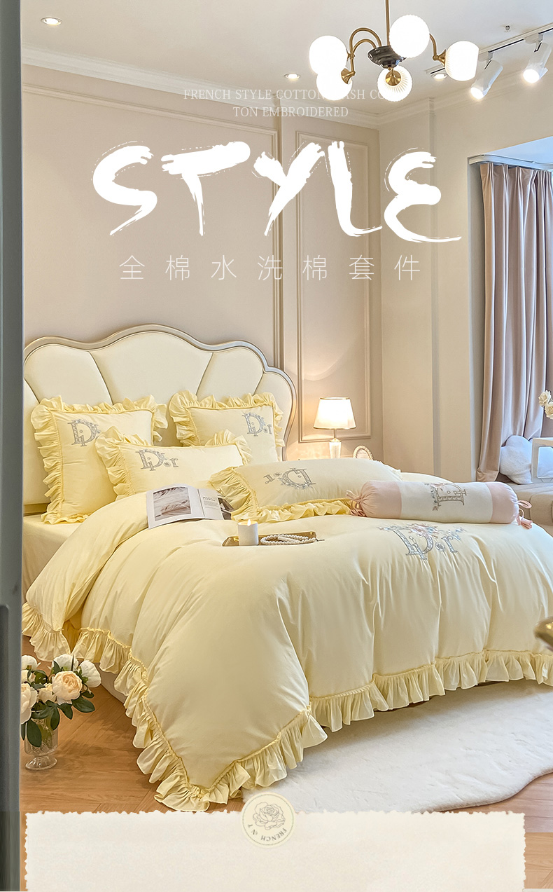 商品名称:木子 2024新款纯色花边全棉水洗棉四件套-蔻朵 蔻朵-象牙黄