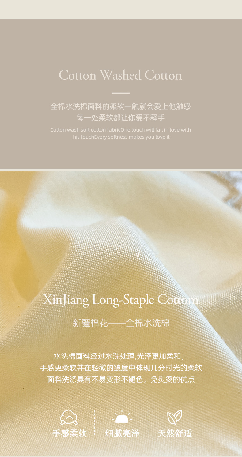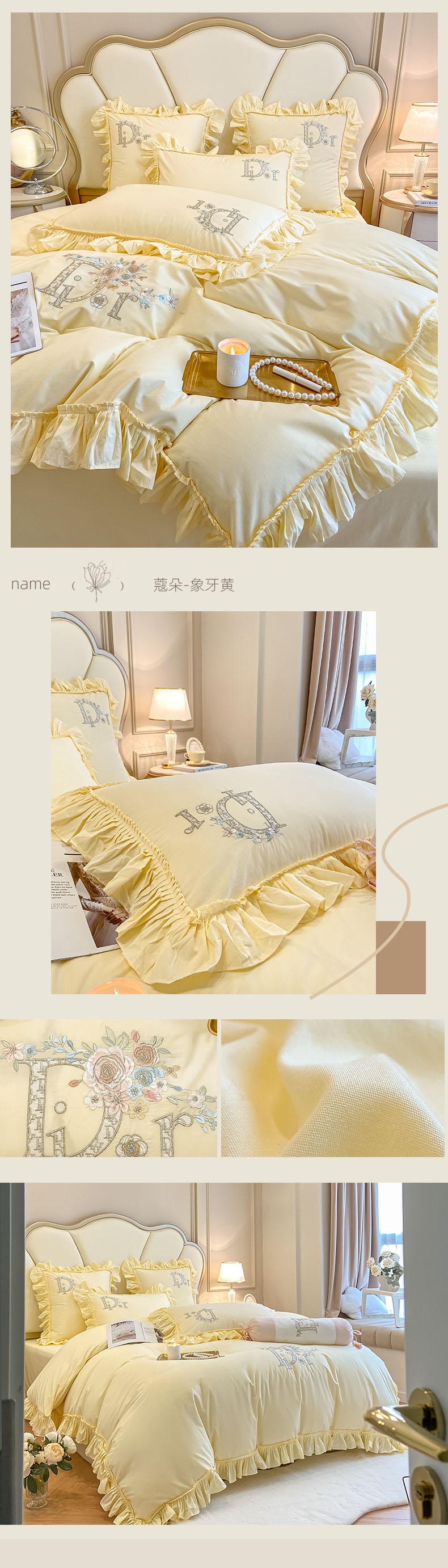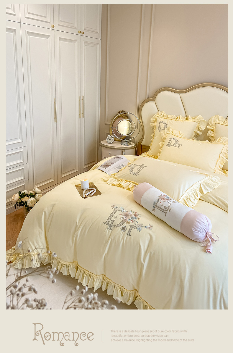商品名称:木子 2024新款纯色花边全棉水洗棉四件套-蔻朵 蔻朵-象牙黄