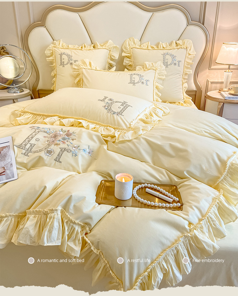 木子 2024新款纯色花边全棉水洗棉四件套-蔻朵 蔻朵-象牙黄