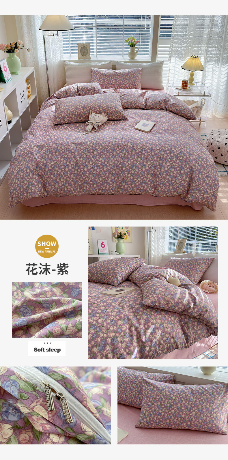 怡家居 2024新款全棉印花第二批碎花类四件套 花沫-紫