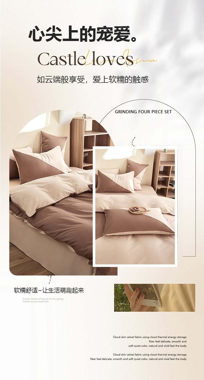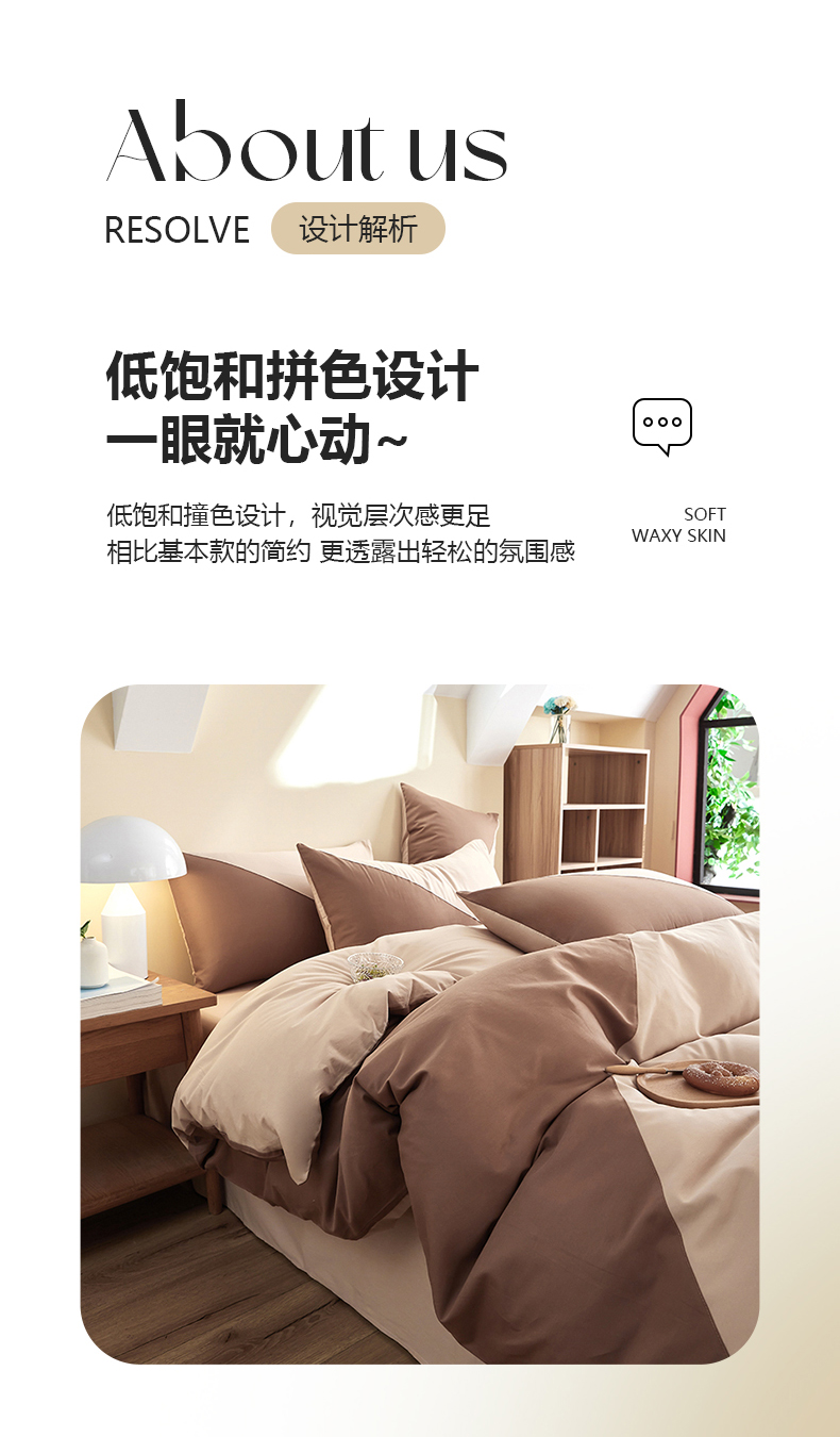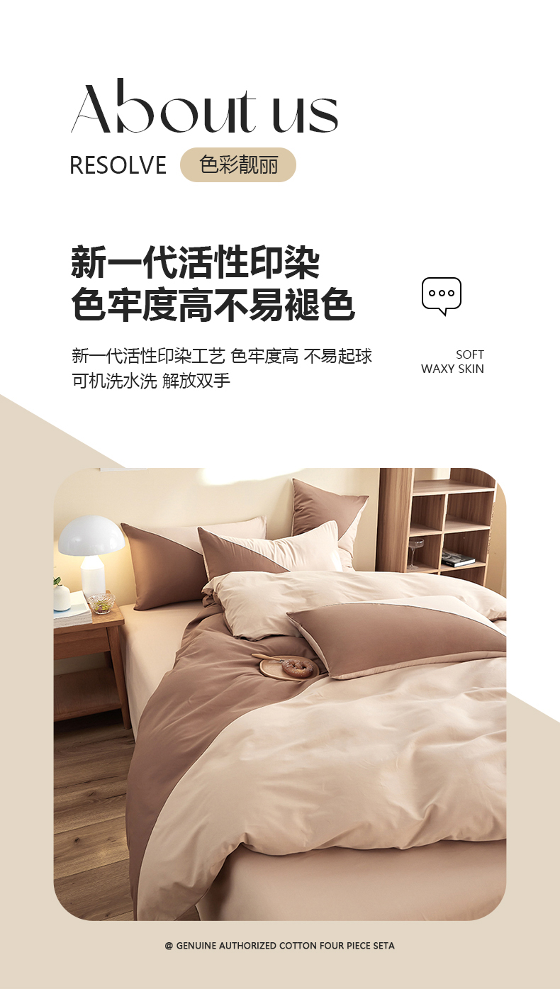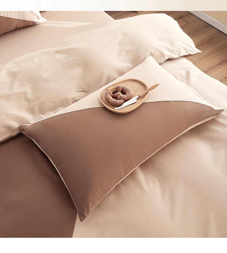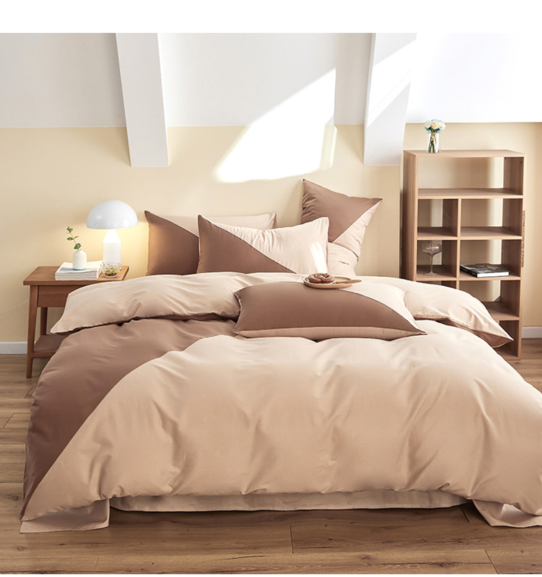 商品名称:慕希家纺 2024新款40S全棉喷气13372简约三角拼四件套 简约-香槟咖