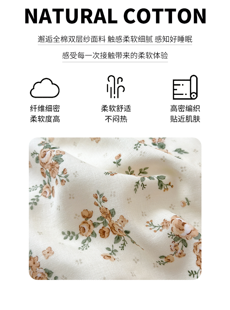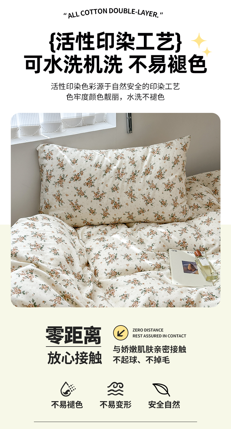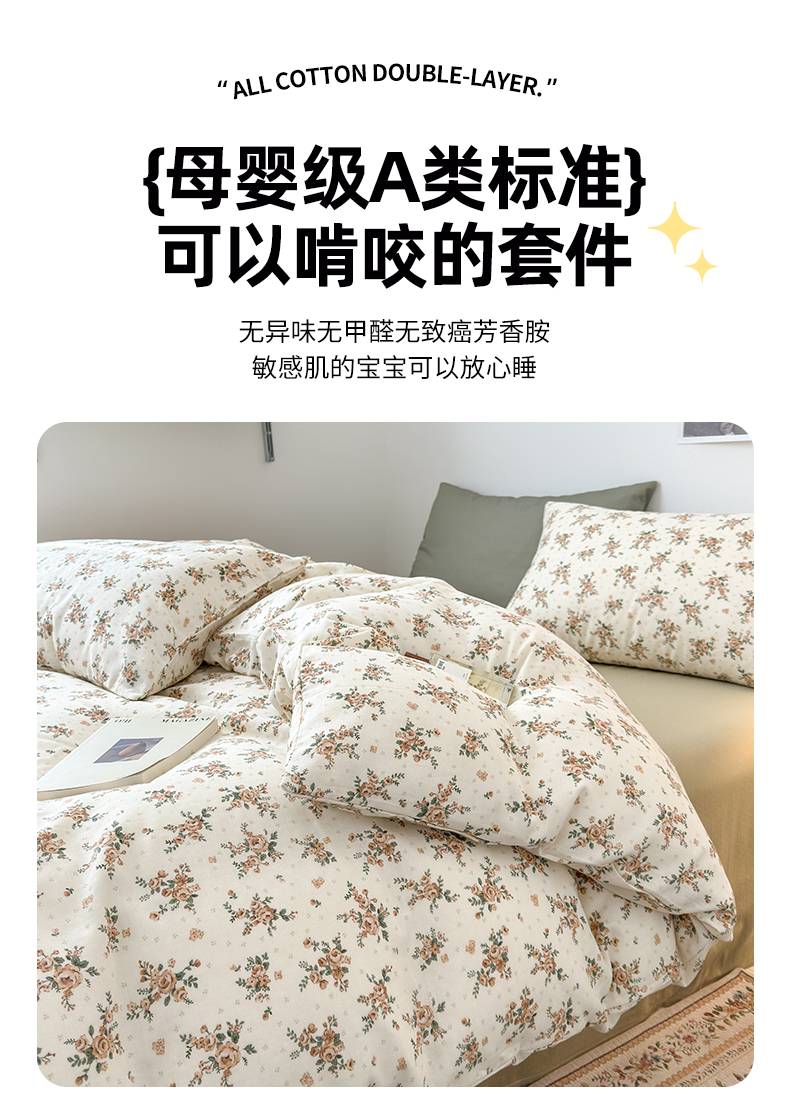 (总)优彩 2025新款全棉双层纱四件套,采花兔,彩蘑菇,初暖,粉小花,花栖,恋花小径,萝蔓,落山秋,南瓜派,清然,瑞莎,小熊派,紫葡萄,花栖-咖