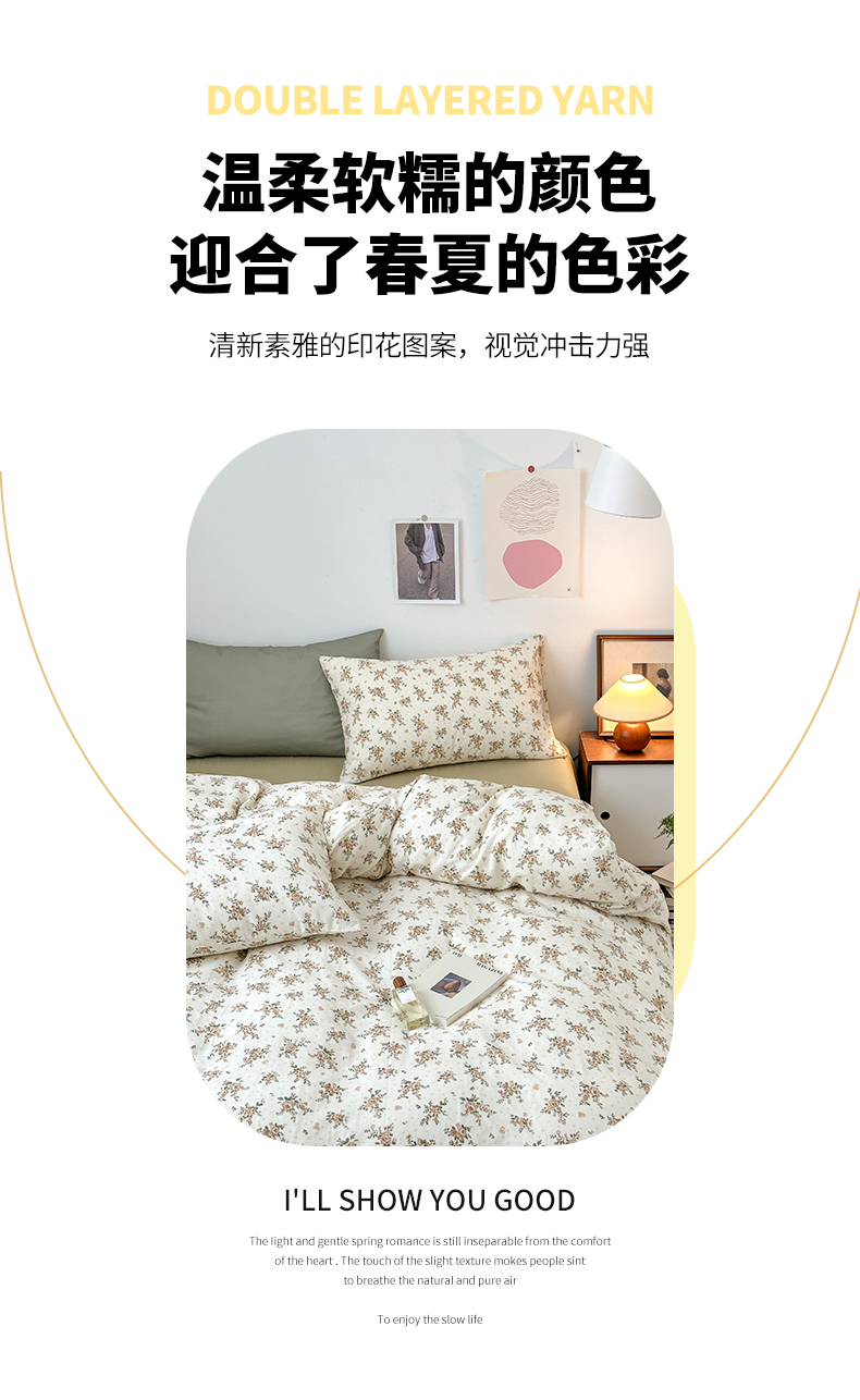 (总)优彩 2025新款全棉双层纱四件套,春岚,豆蔻,花花小狗,花信风,六町目,糯米团子,染香,星星蝴蝶,枕边花,花栖,萝蔓