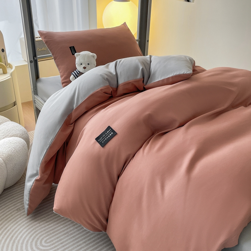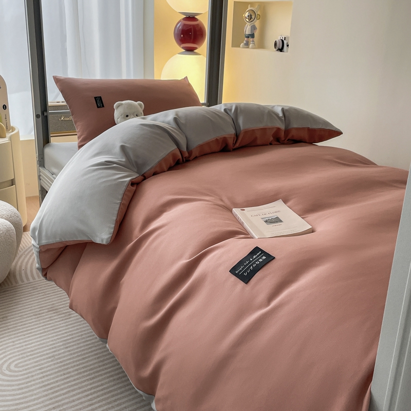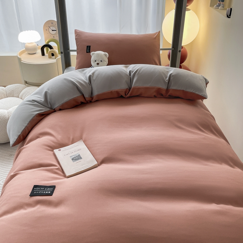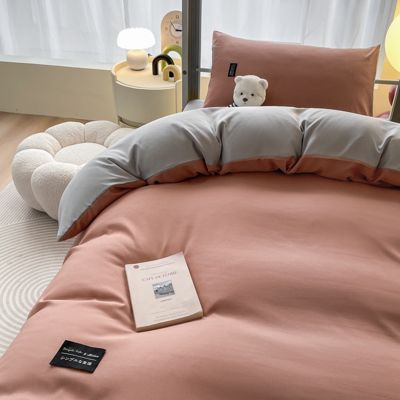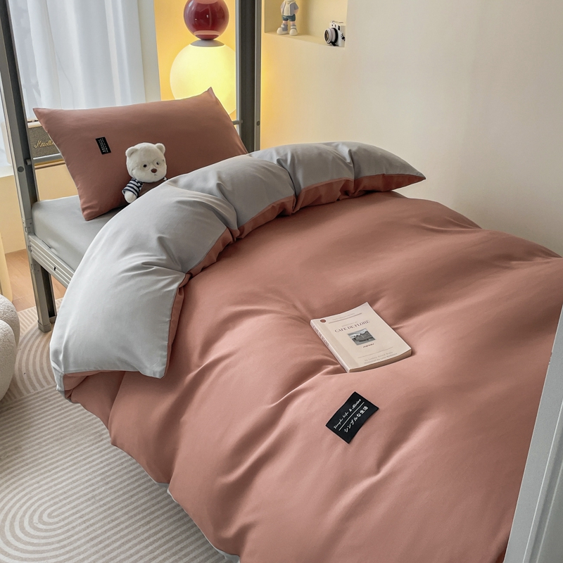 商品名称:米瑞娜2024水洗棉麻双拼纯色学生款被套 黛粉+浅灰