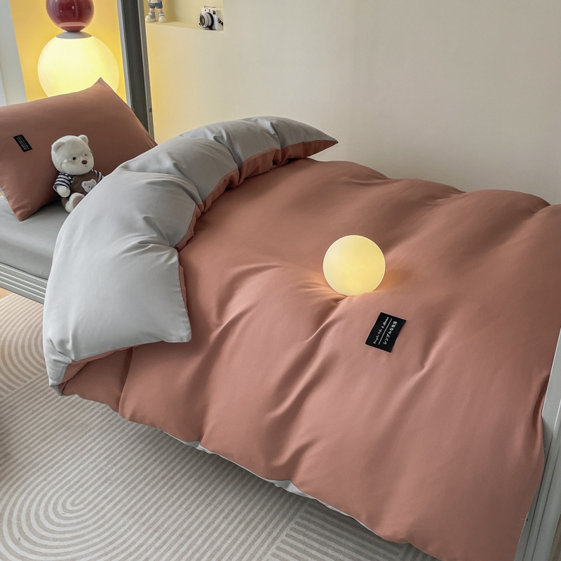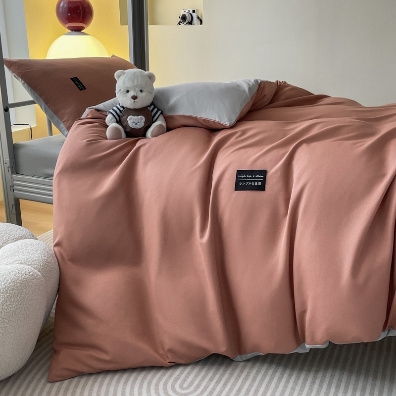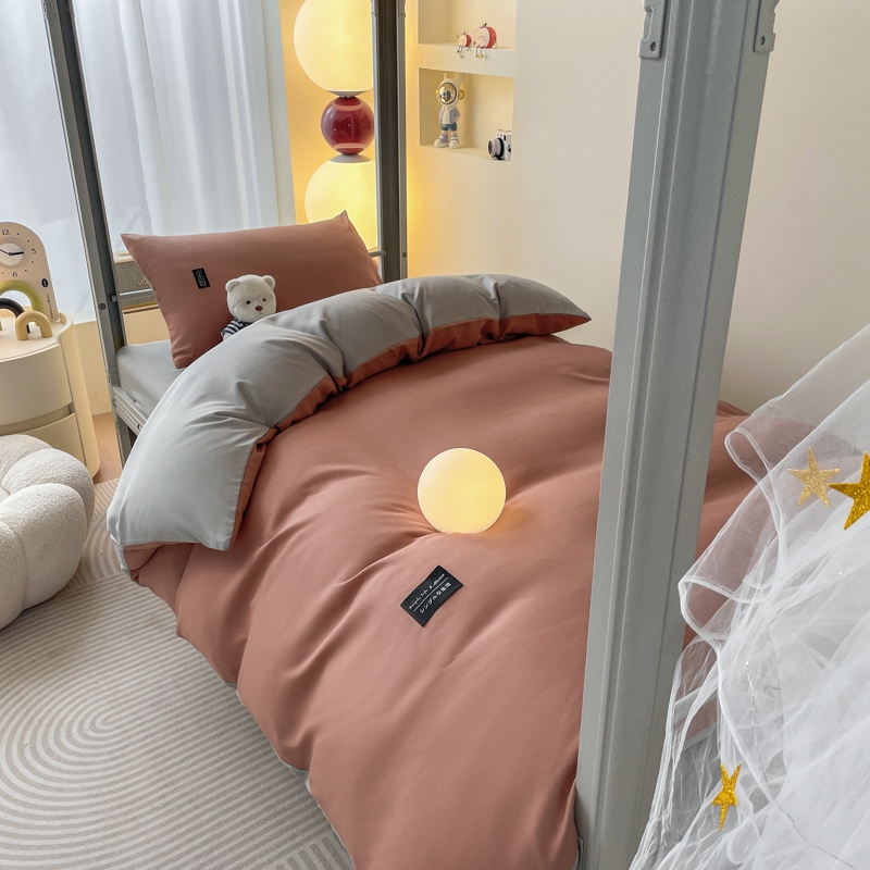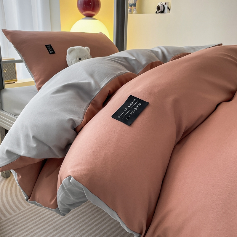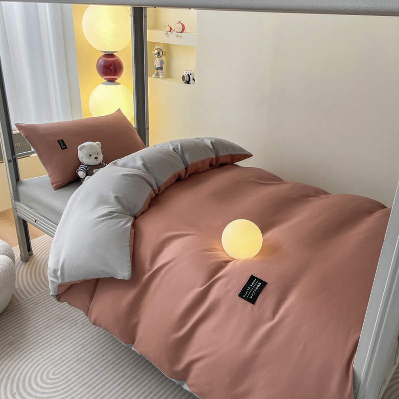 商品名称:米瑞娜2024水洗棉麻双拼纯色学生款被套 黛粉+浅灰