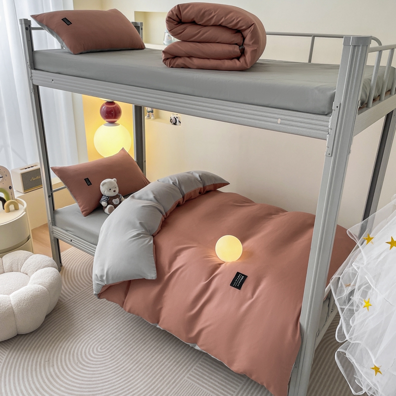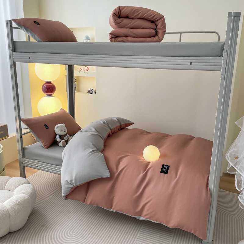 米瑞娜2024水洗棉麻双拼纯色学生款被套 黛粉+浅灰