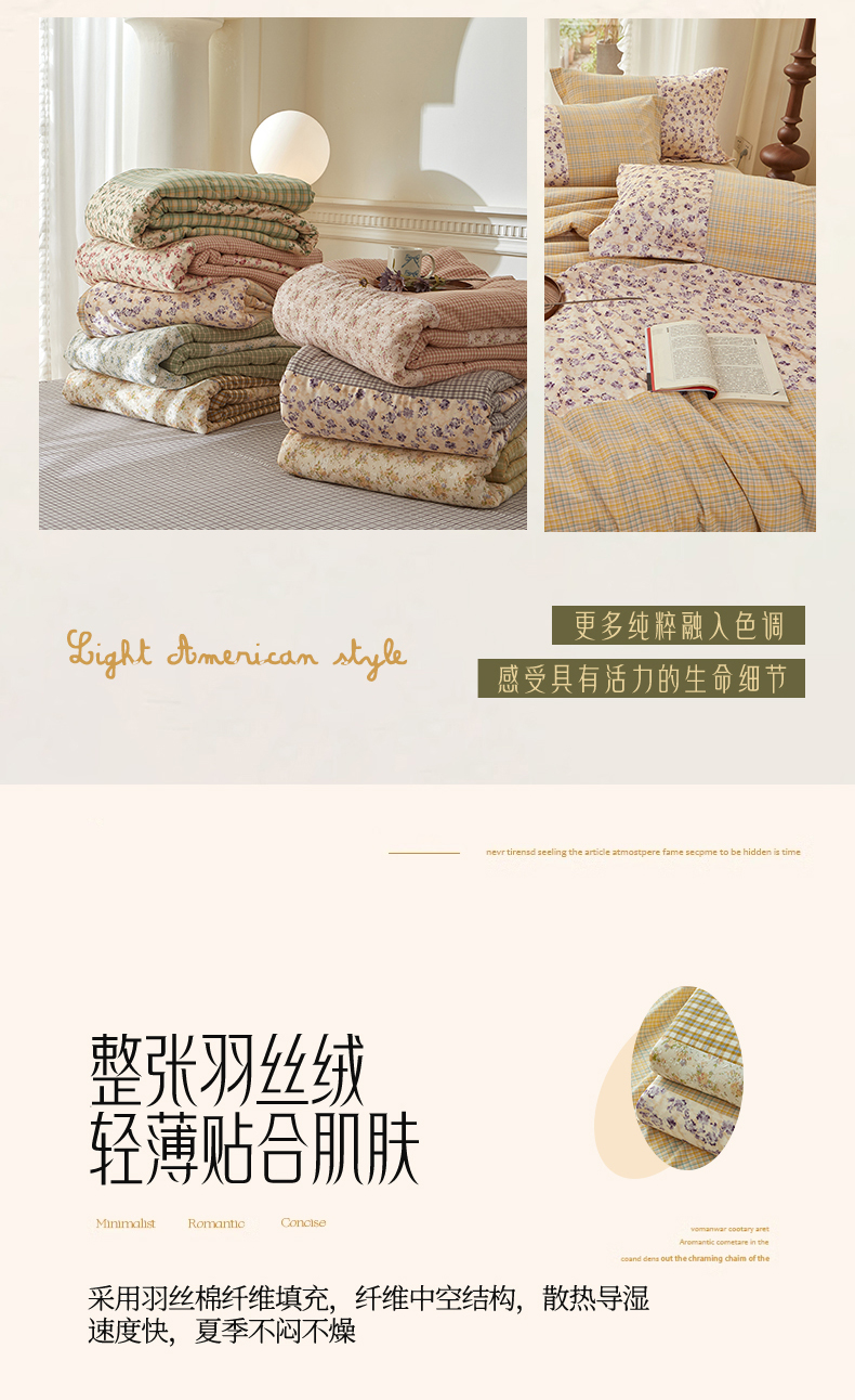 • 91家纺网 家纺一手货源 找家纺 换种生活 2024新款美式田园风全棉夏被四件套 凯拉日记