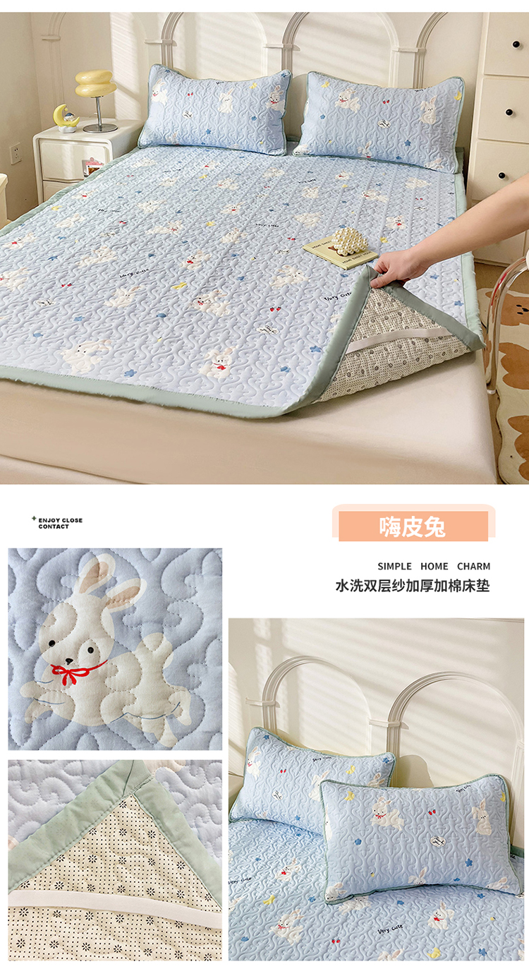 商品名称:纽缦家纺 水洗双层纱加厚加棉床垫 嗨皮兔