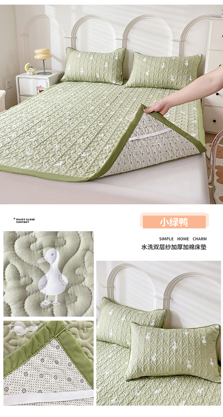 纽缦家纺 水洗双层纱加厚加棉床垫 小绿鸭