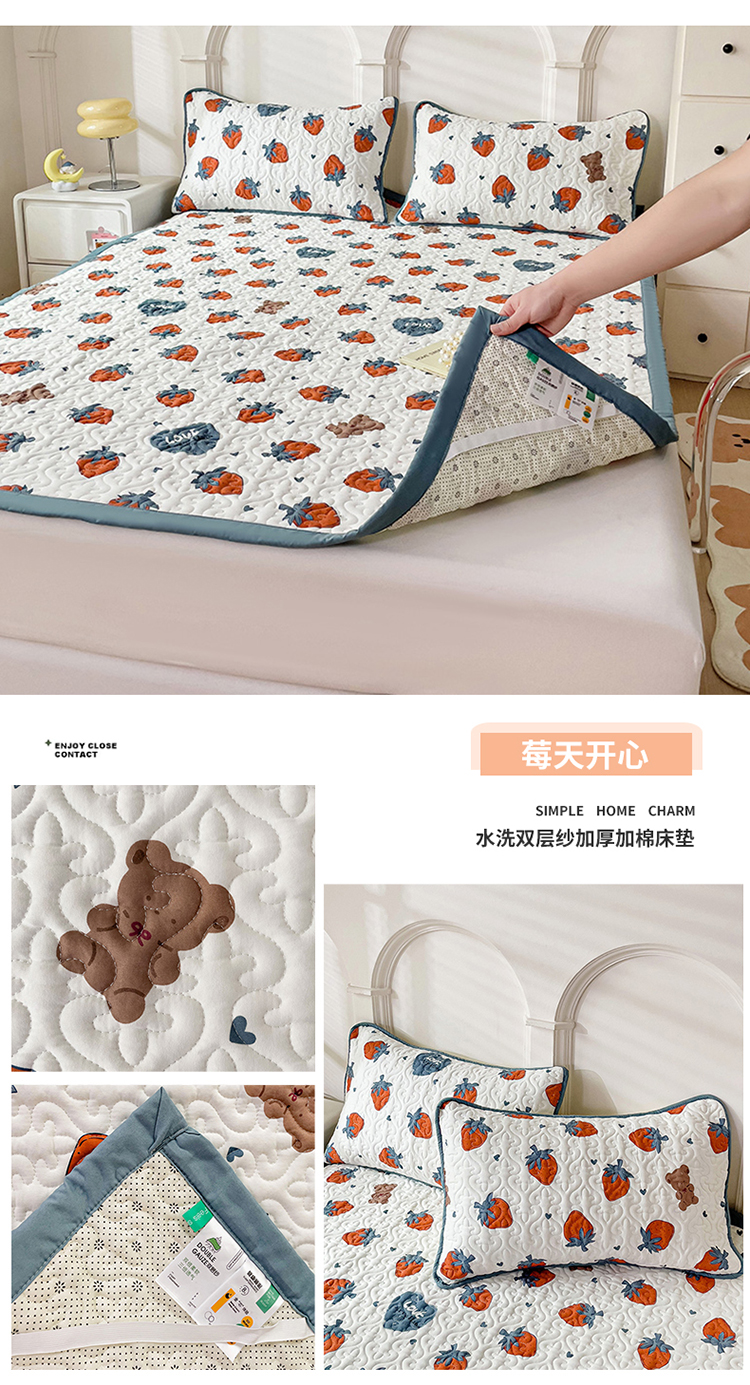 商品名称:纽缦家纺 水洗双层纱加厚加棉床垫 莓天开心