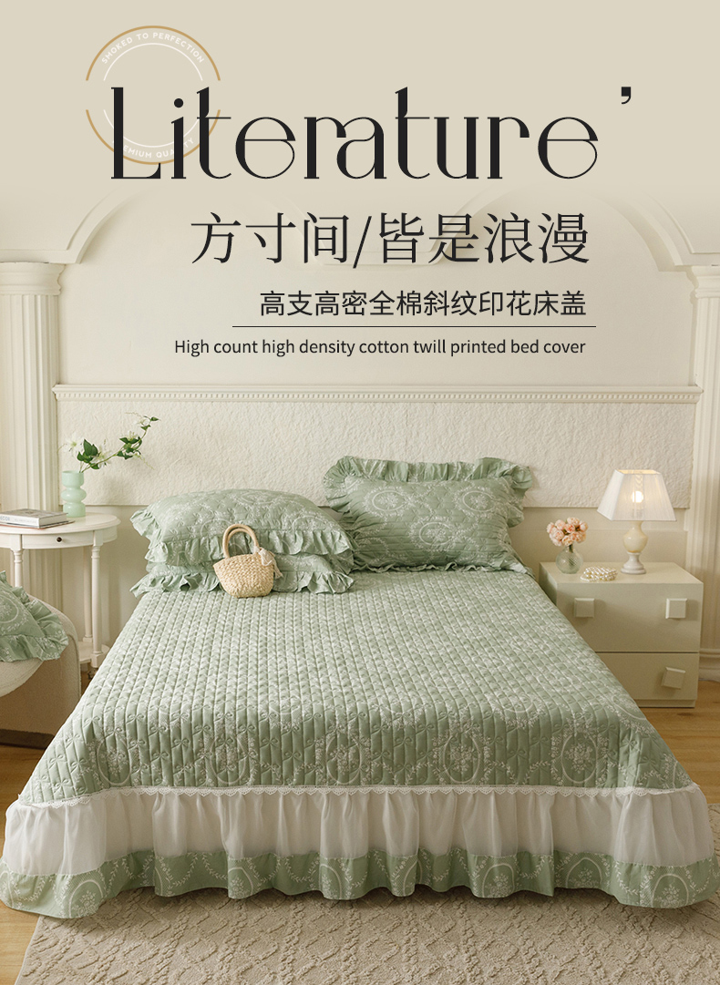 (总)胜权家纺 2025秋冬新款全棉法式13372数码印花夹棉床盖单品系列,花非花粉,花非花绿,妙颜粉,锦绣繁华绿,花海绿,锦绣繁华粉