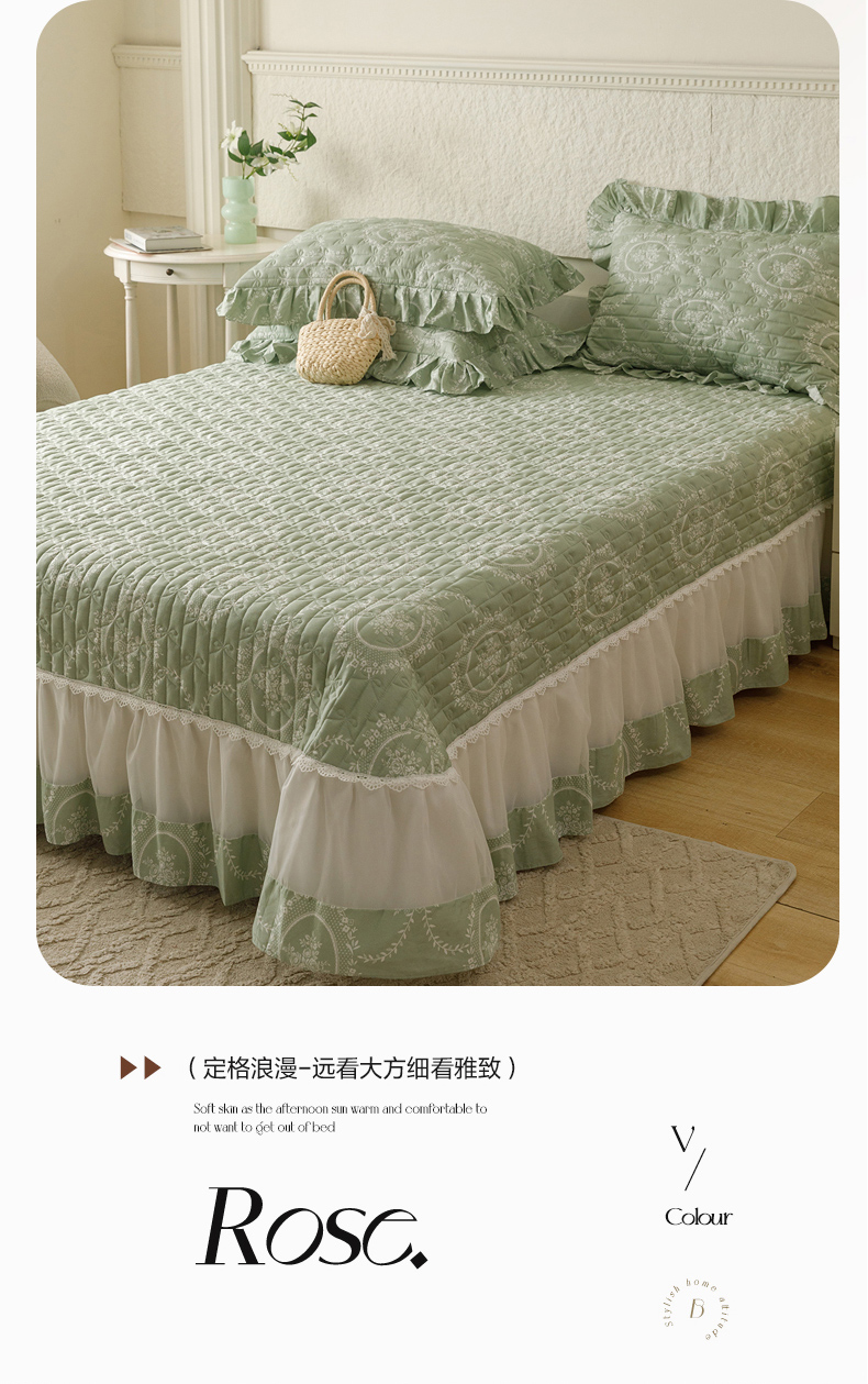 商品名称:胜权 2024新款高端欧根纱全棉印花夹棉床盖单品 洛可可