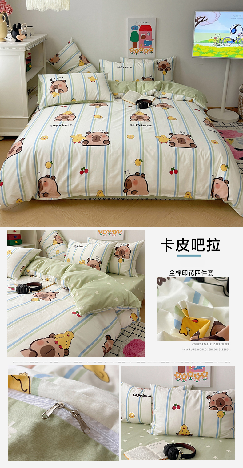 商品名称:卧趣家纺 2024新款纯棉13372小清新卡通全棉四件套萌趣系列 卡皮吧拉