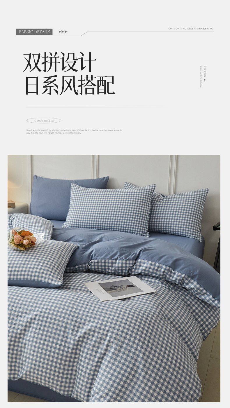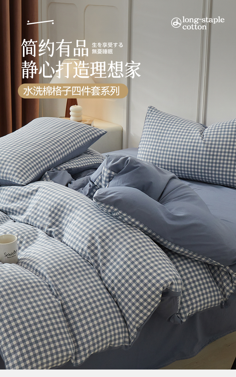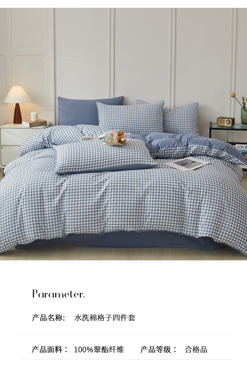 当前位置: 91家纺网 > 商品网购 > 床品套件 > 四件套 > 水洗棉四件套 > 盛秋家纺 2025新款水洗棉格子系列四件套 蓝小格+蓝灰