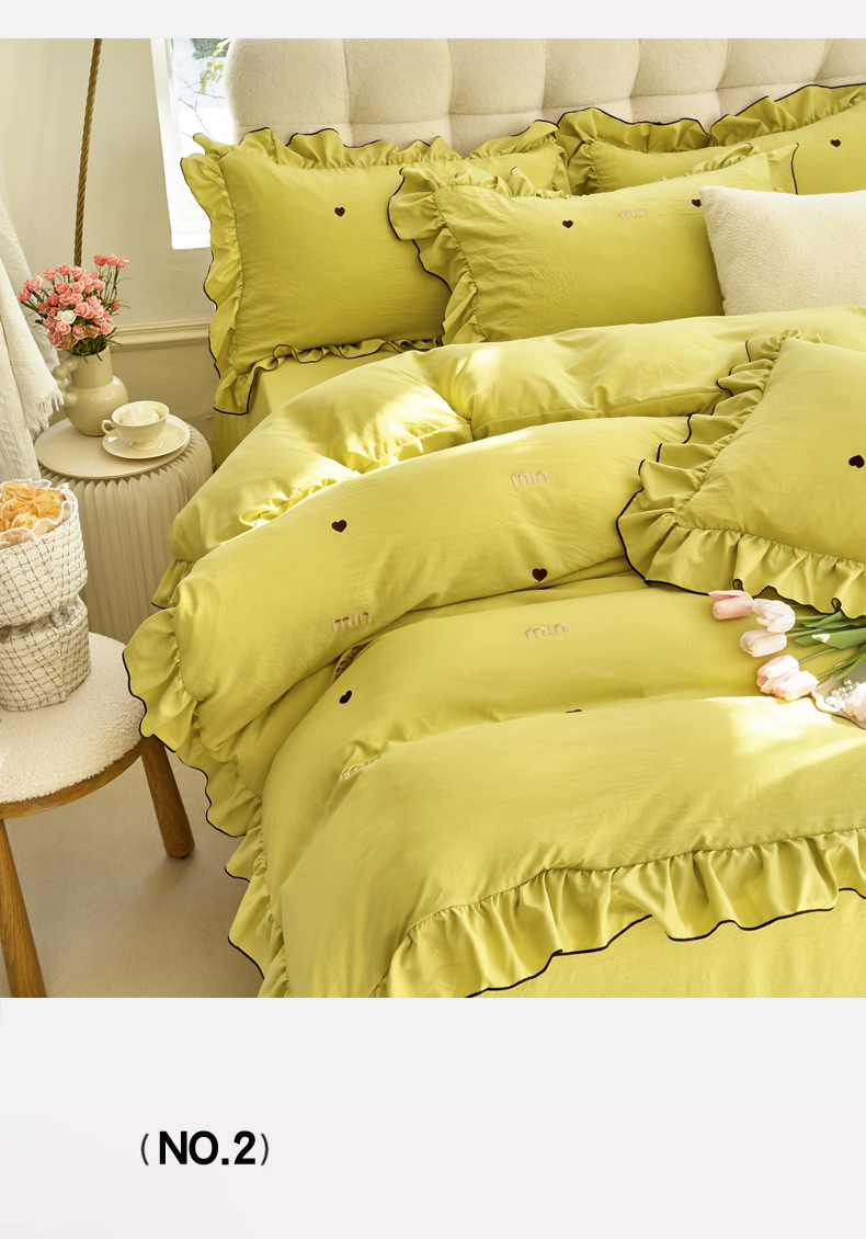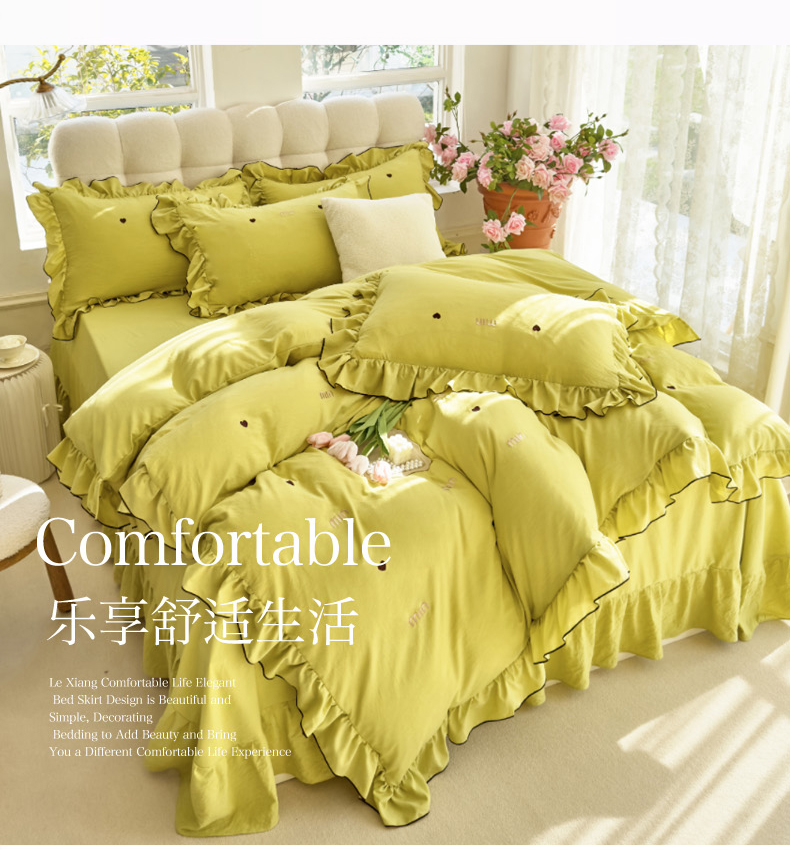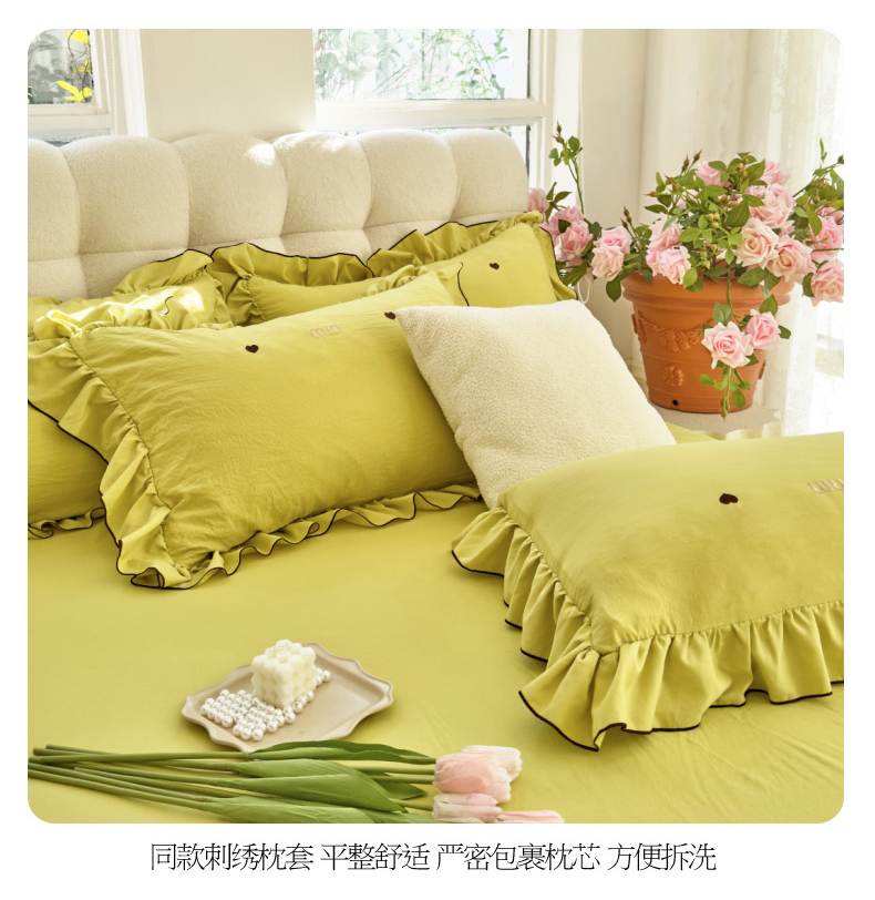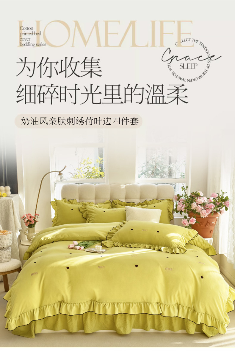 (总)梦可莱 2024新款亲肤刺绣荷叶边四件套-心灵迷恋,豆沙,奶油粉,奶油黄,牛油果绿,清新绿,香芋紫