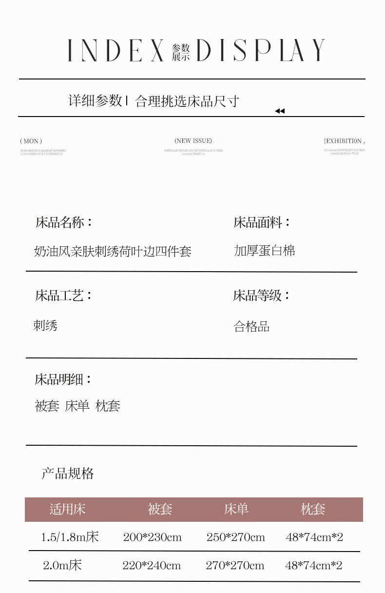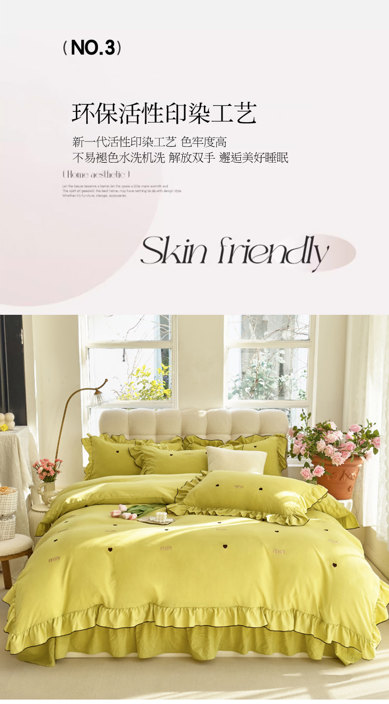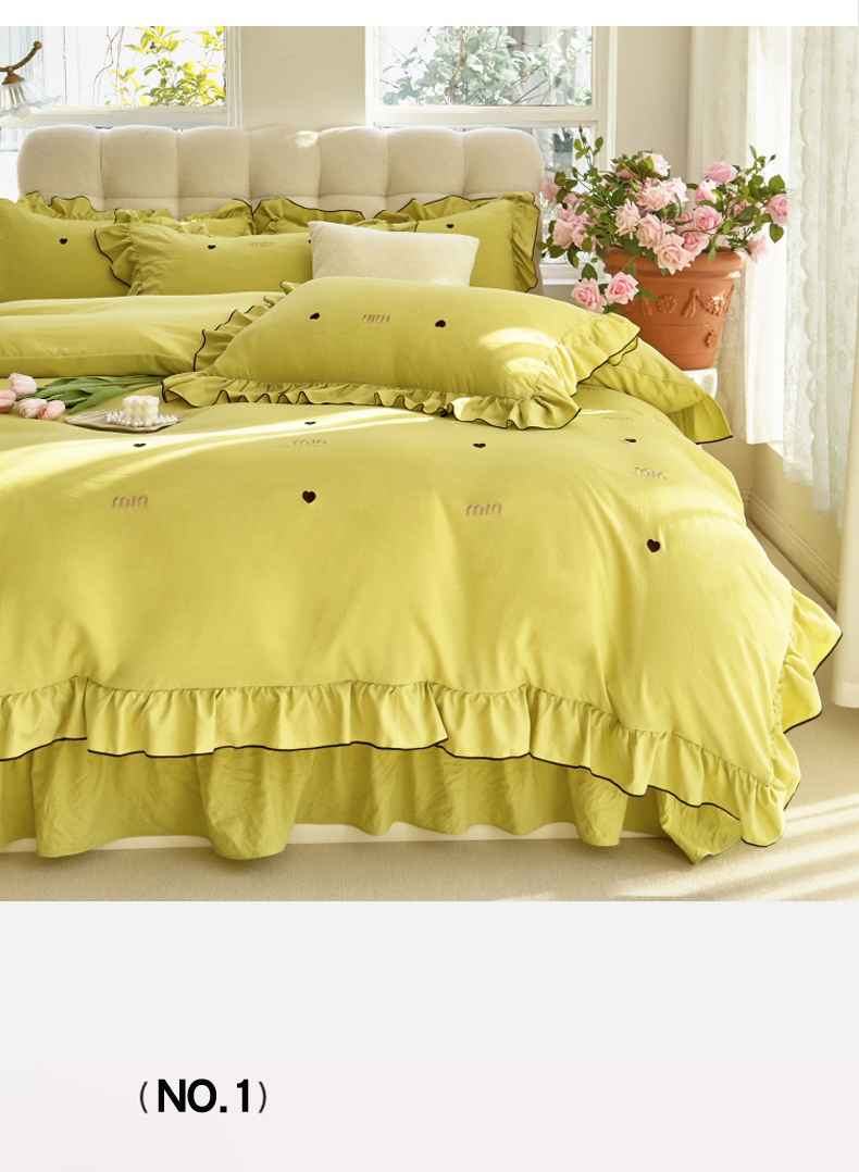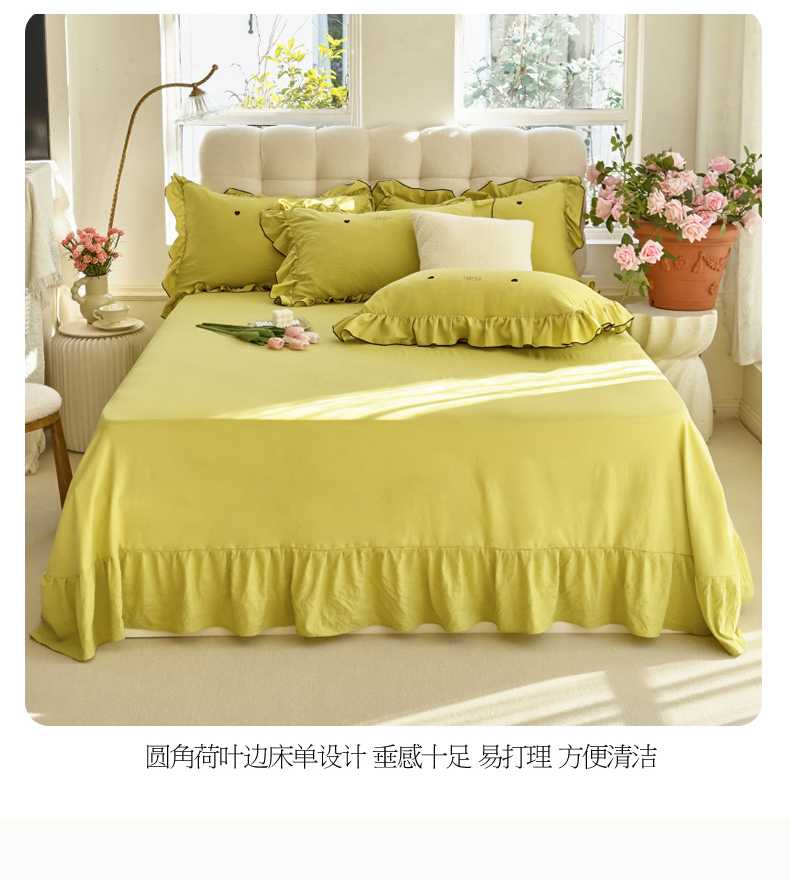 (总)梦可莱 2024新款亲肤刺绣荷叶边四件套-心灵迷恋,豆沙,奶油粉,奶油黄,牛油果绿,清新绿,香芋紫