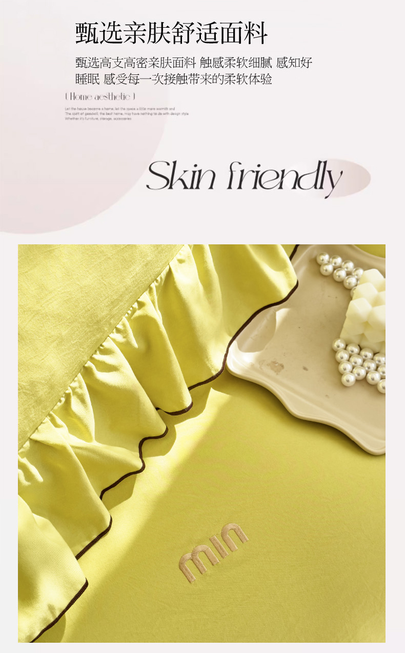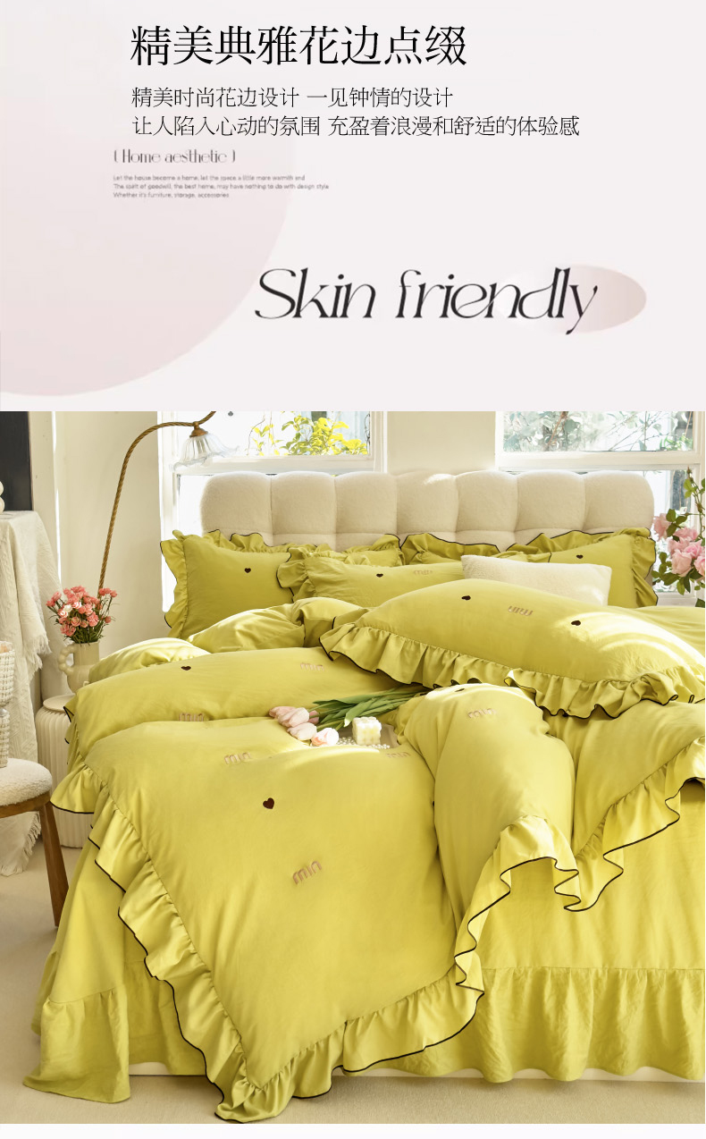 商品名称:梦可莱 2024新款亲肤刺绣荷叶边四件套-心灵迷恋 牛油果绿
