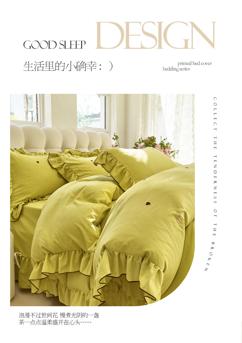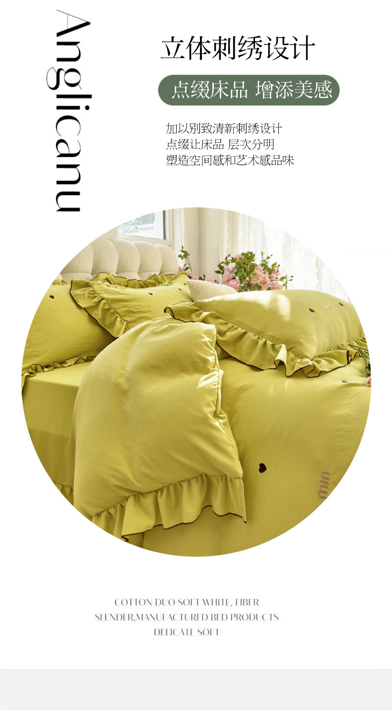 梦可莱 2024新款亲肤刺绣荷叶边四件套-心灵迷恋 牛油果绿