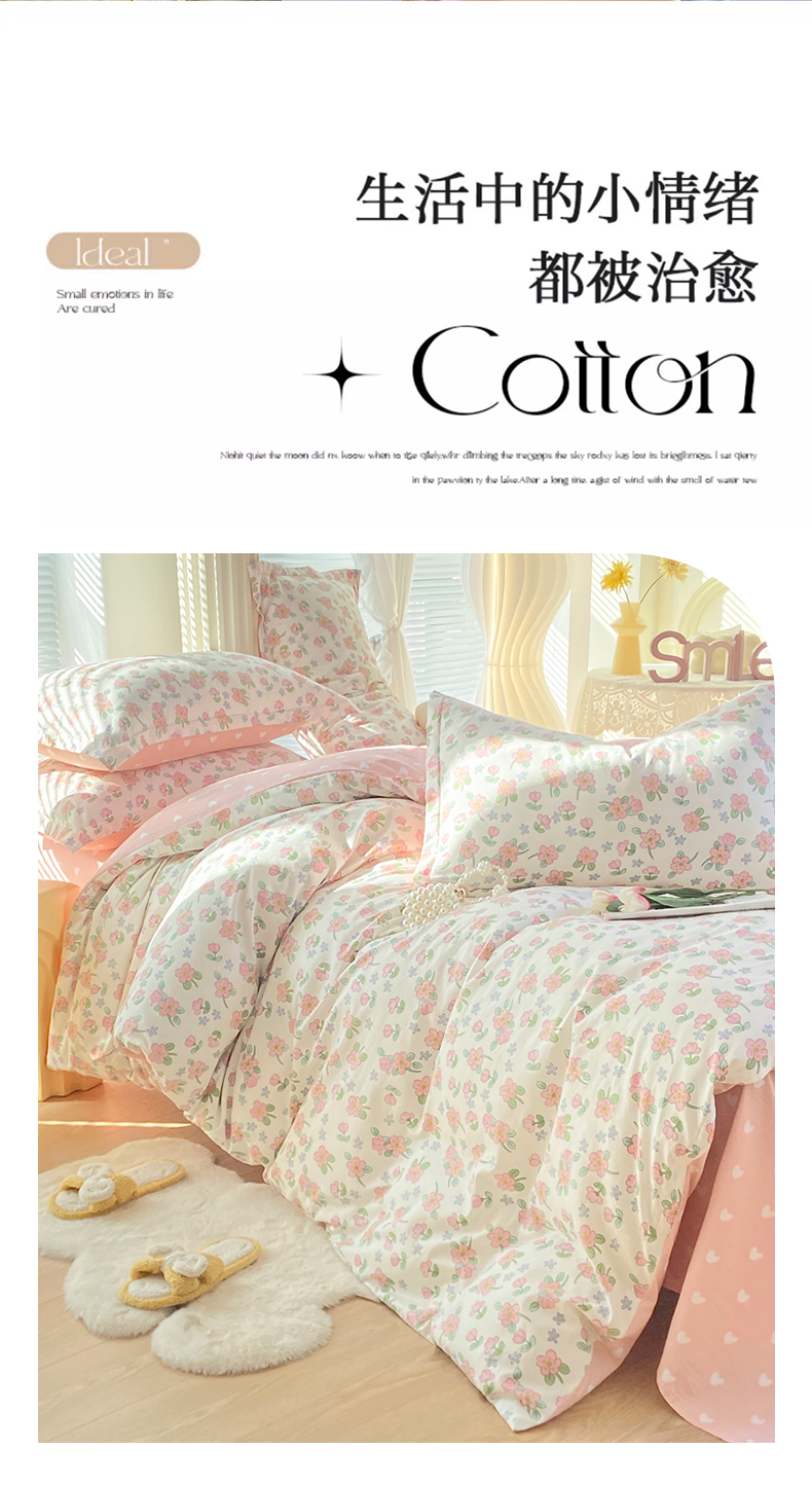 • 91家纺网 家纺一手货源 找家纺 (总)珂博家纺 2025新款12868全棉纯棉小清新印花四件套学生宿舍三件套-系列二,繁花似锦,粉萼摇青,粉穹星语,浮青曳紫,结系花铃,汪星织梦,樱露垂角