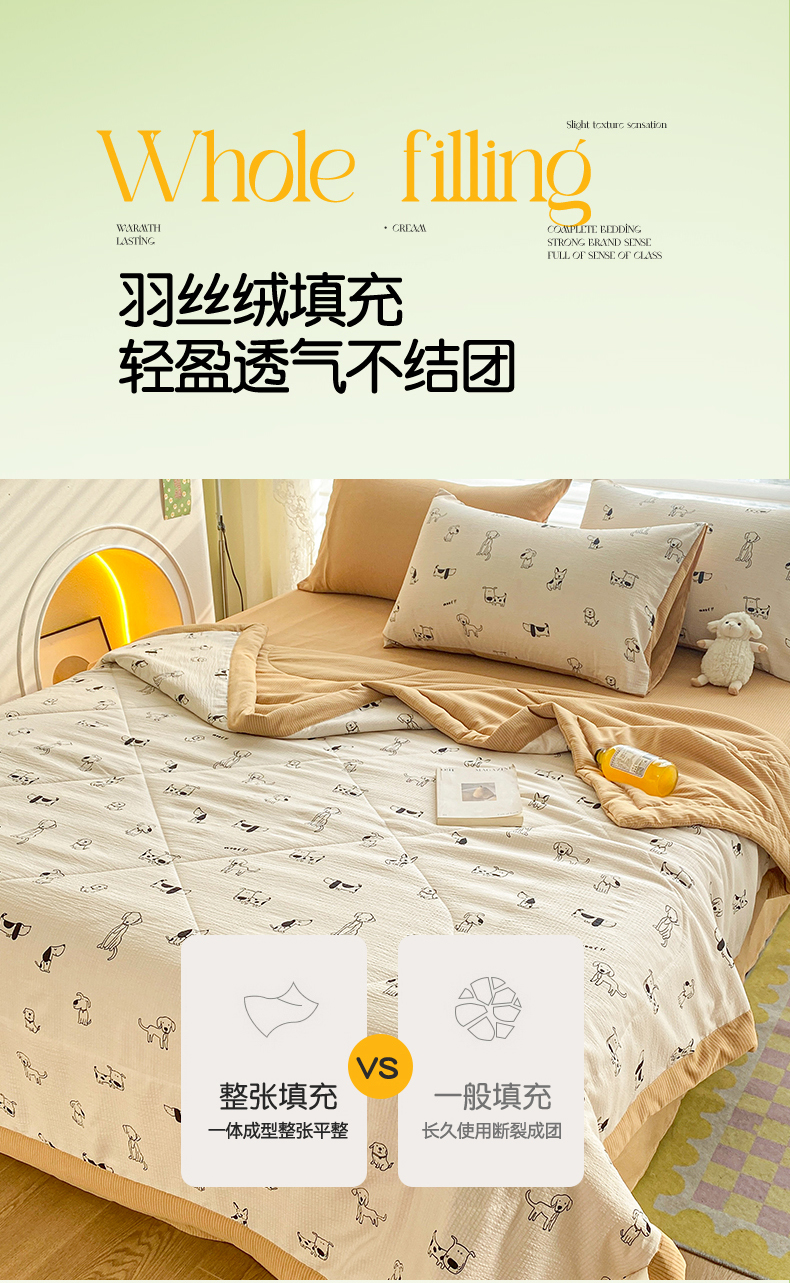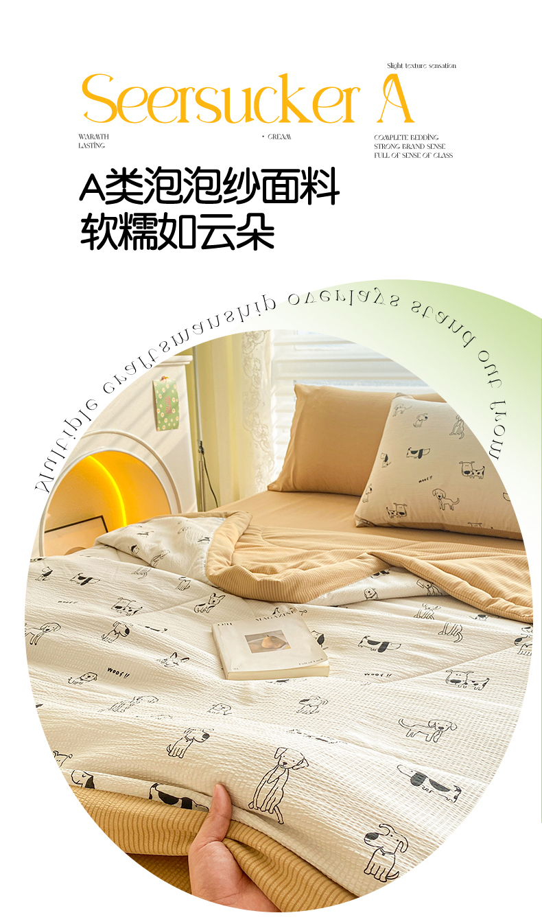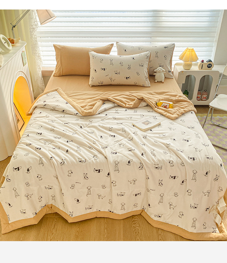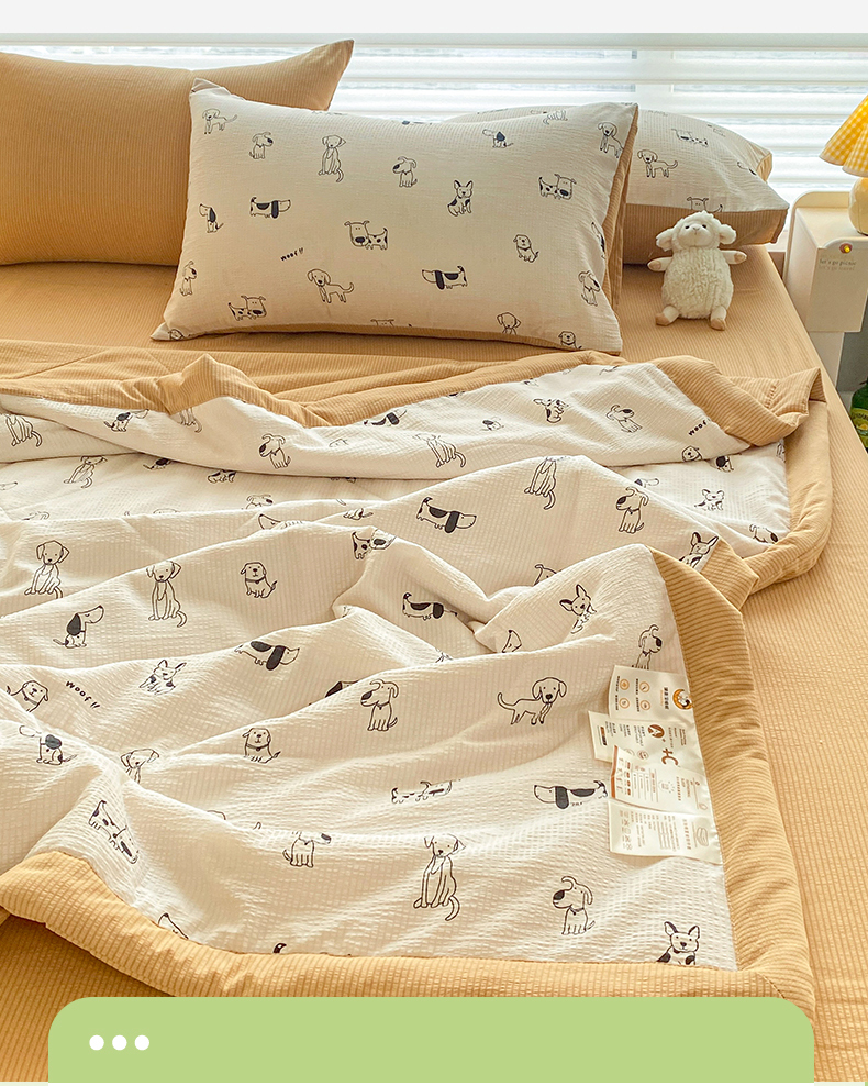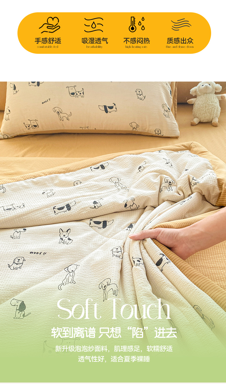 • 91家纺网 家纺一手货源 找家纺 可思家纺 2024新款A类泡泡纱夏被四件套 狗狗派对
