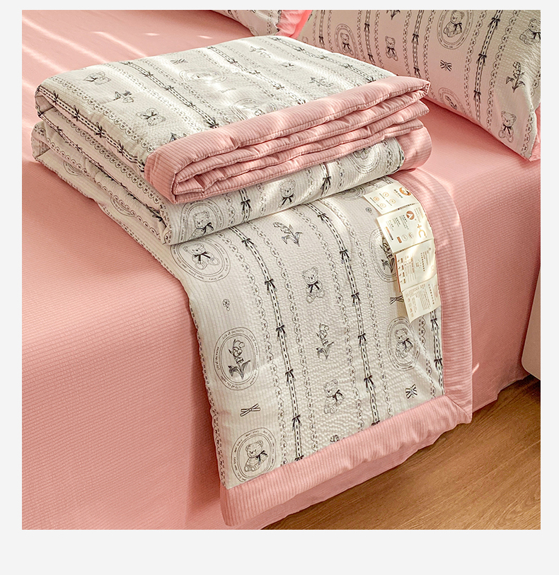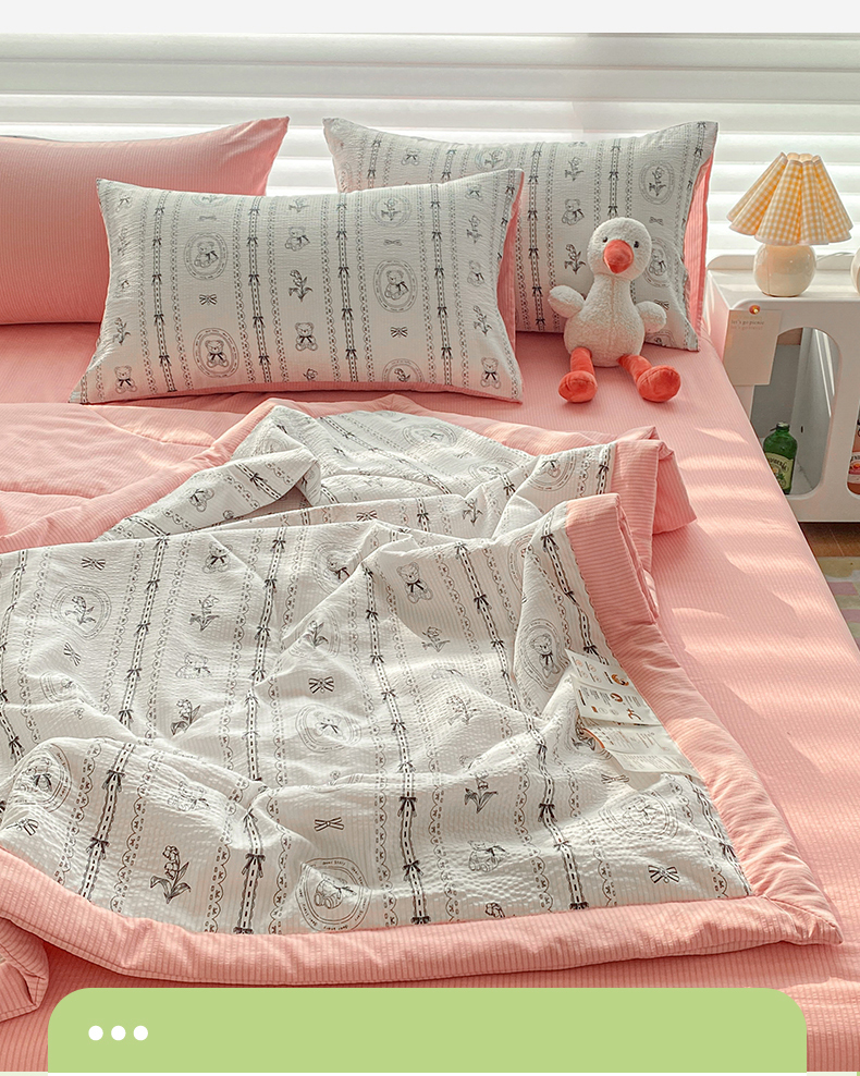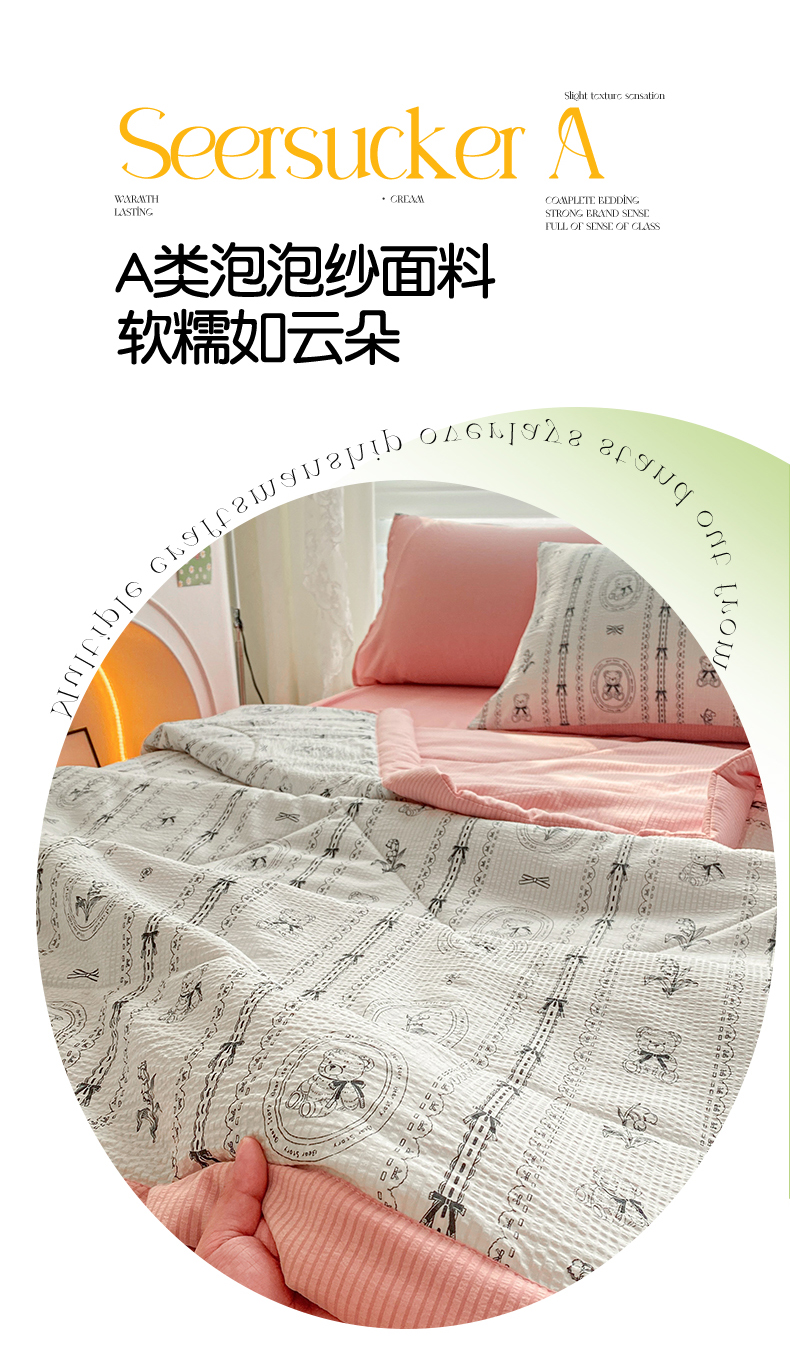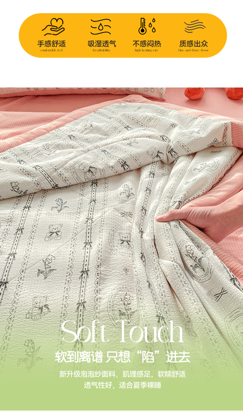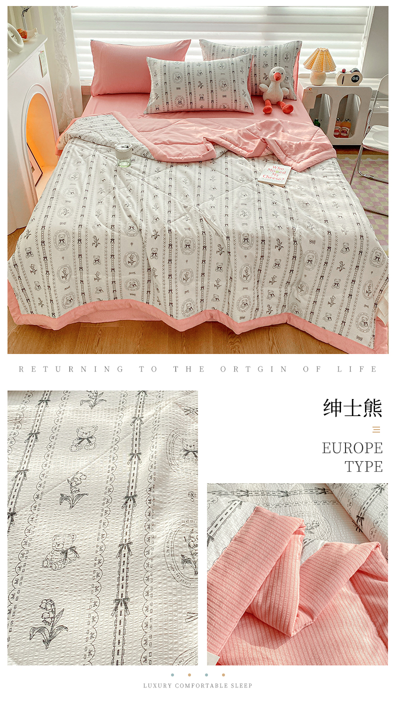 • 91家纺网 家纺一手货源 找家纺 可思家纺 2024新款A类泡泡纱夏被四件套 绅士熊