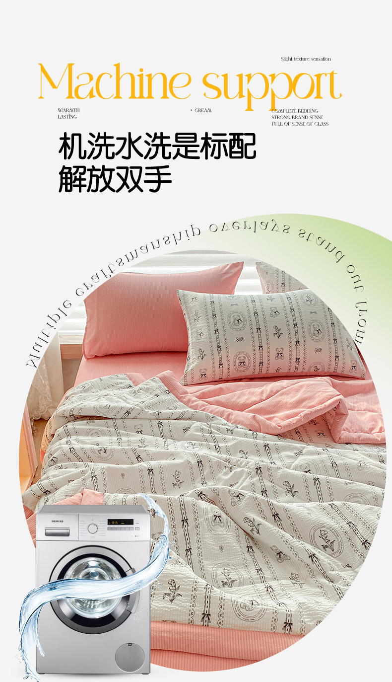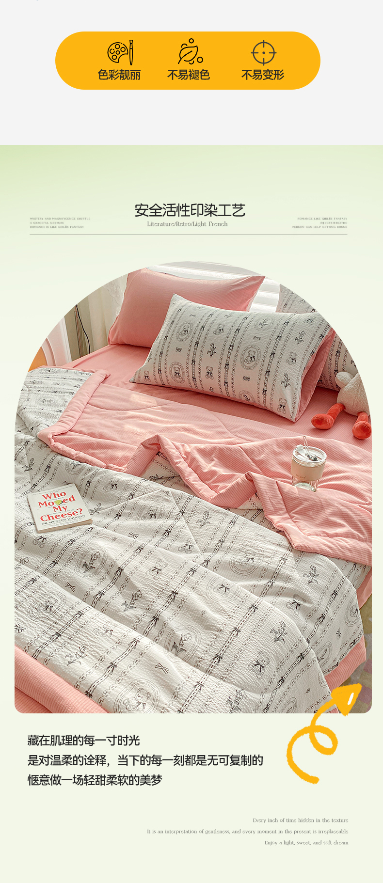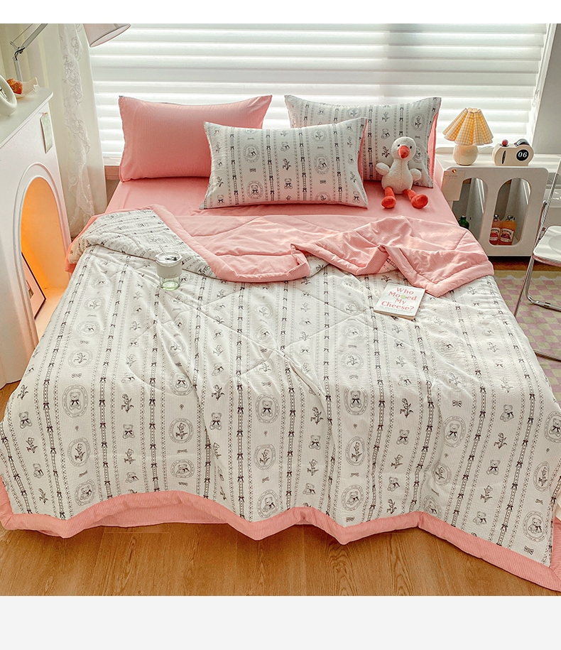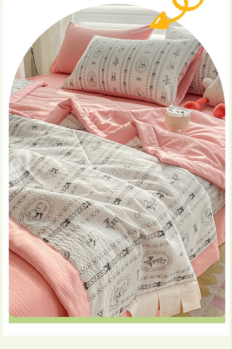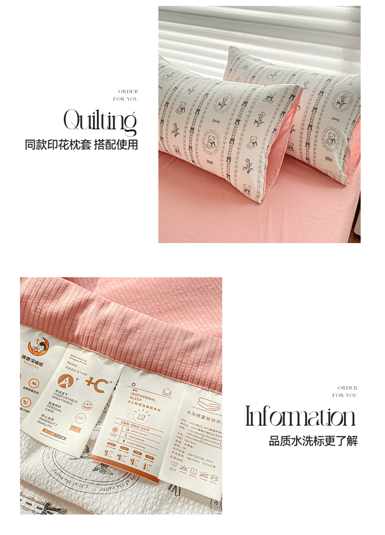 • 91家纺网 家纺一手货源 找家纺 可思家纺 2024新款A类泡泡纱夏被四件套 绅士熊