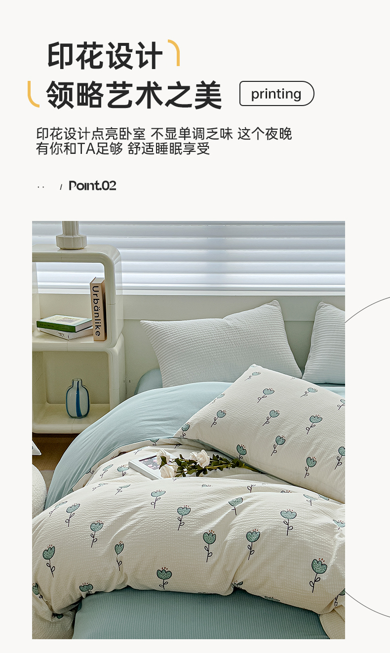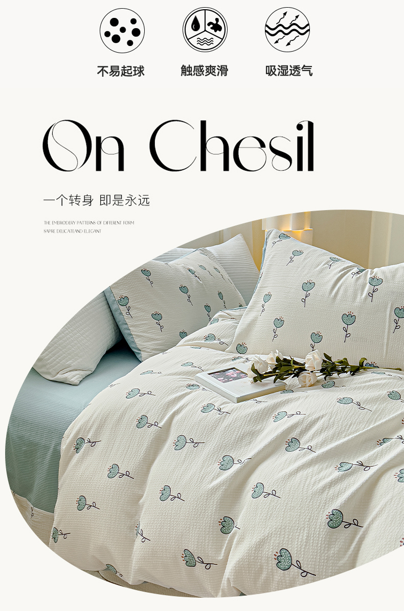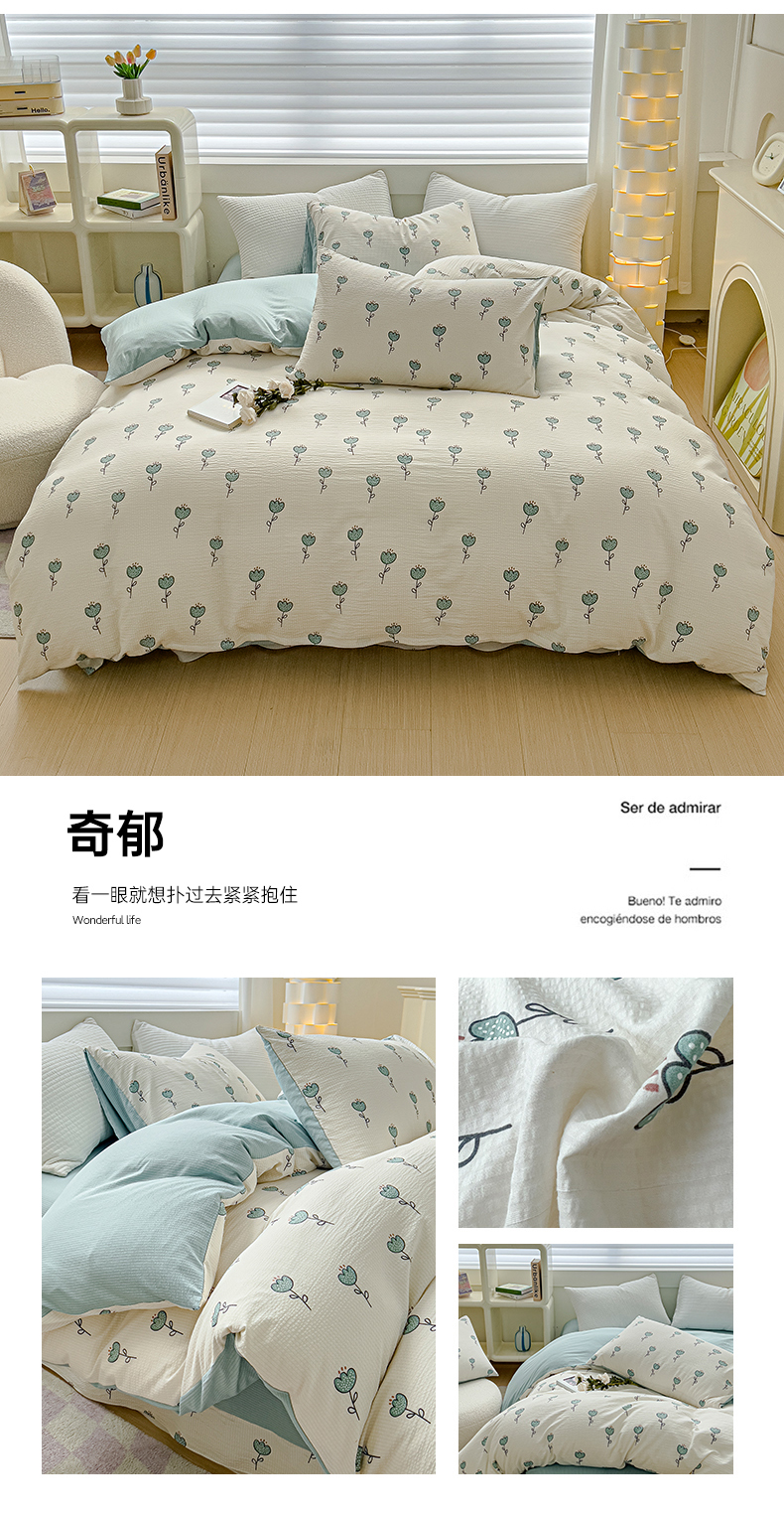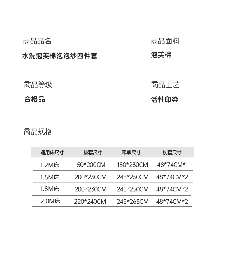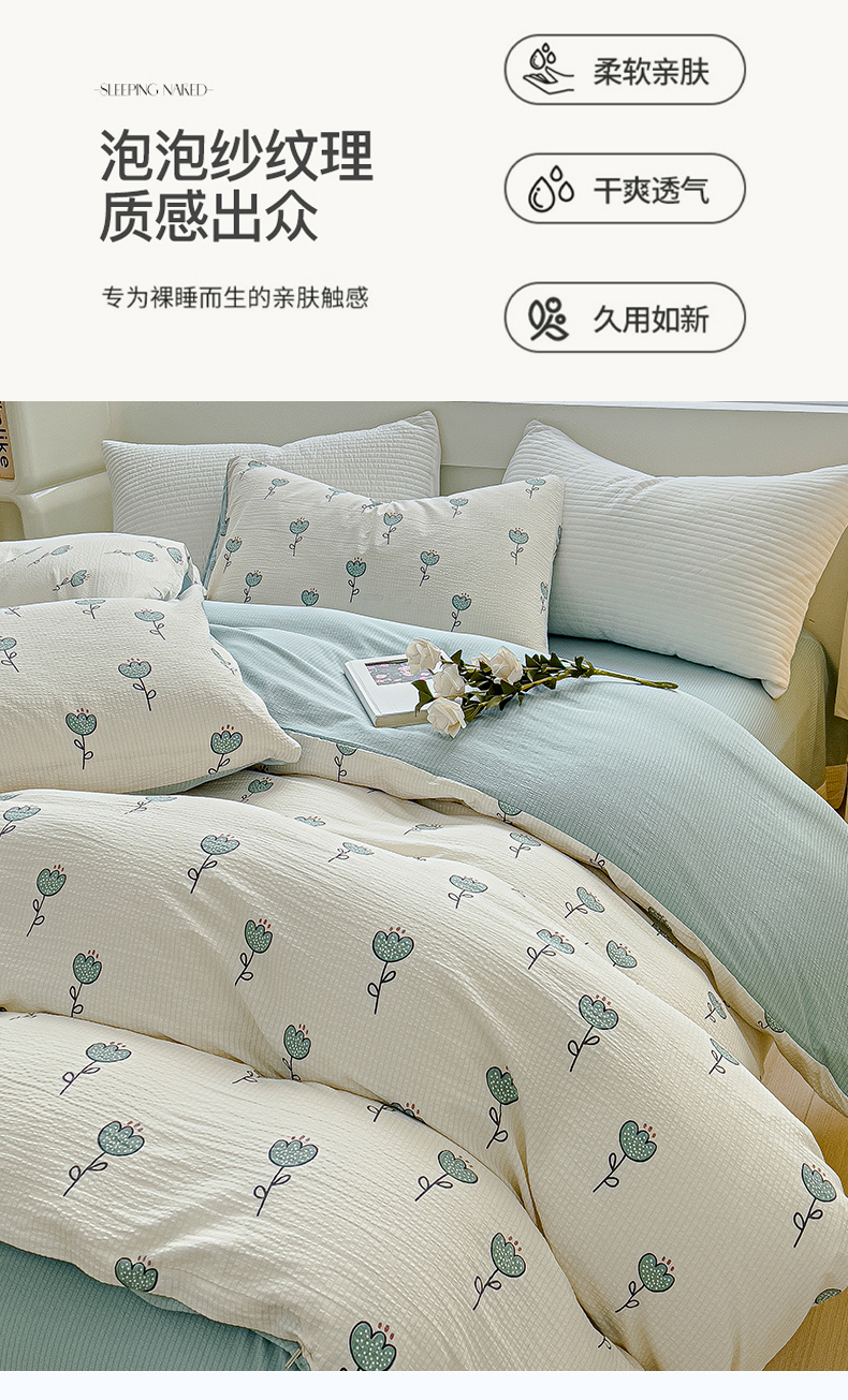 商品名称:可思家纺 2024新款A类水洗泡芙棉泡泡纱四件套 奇郁