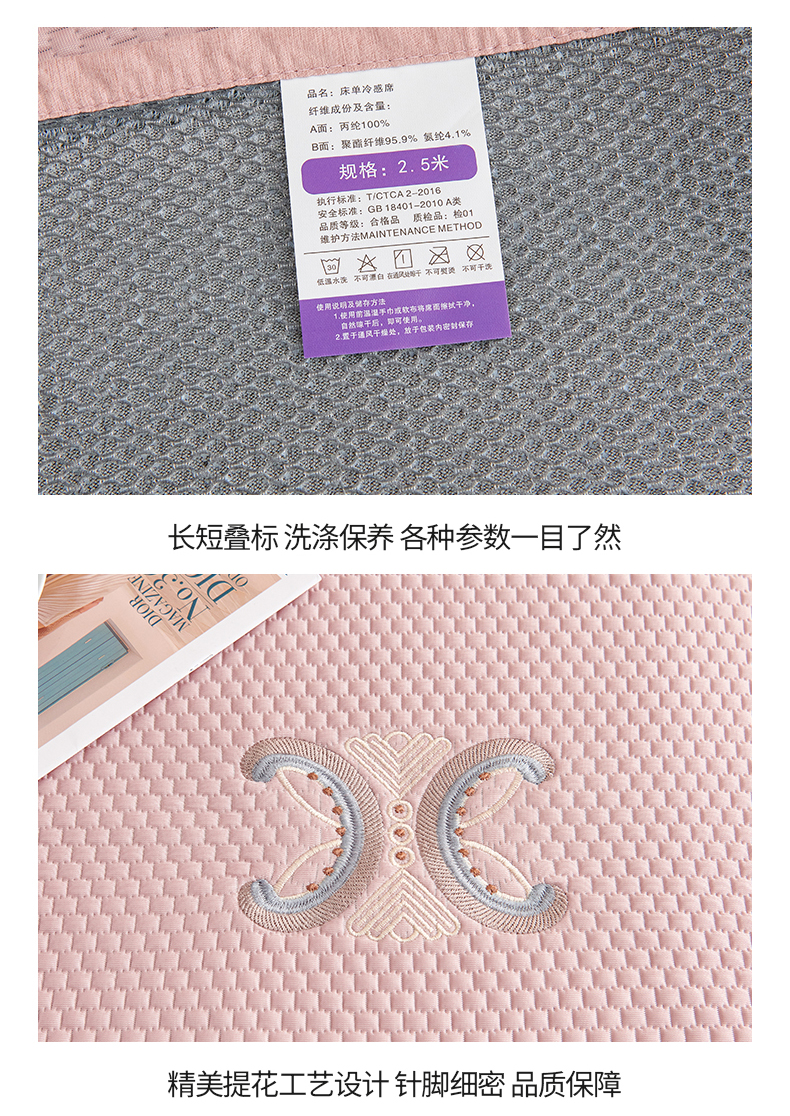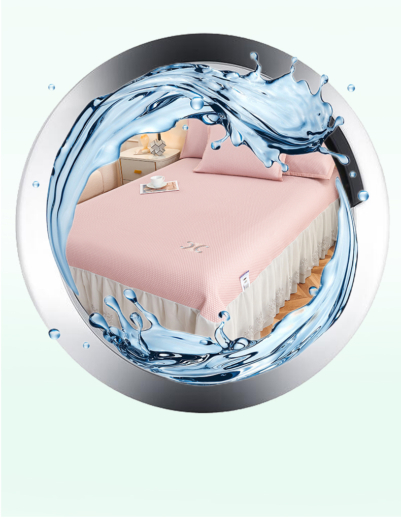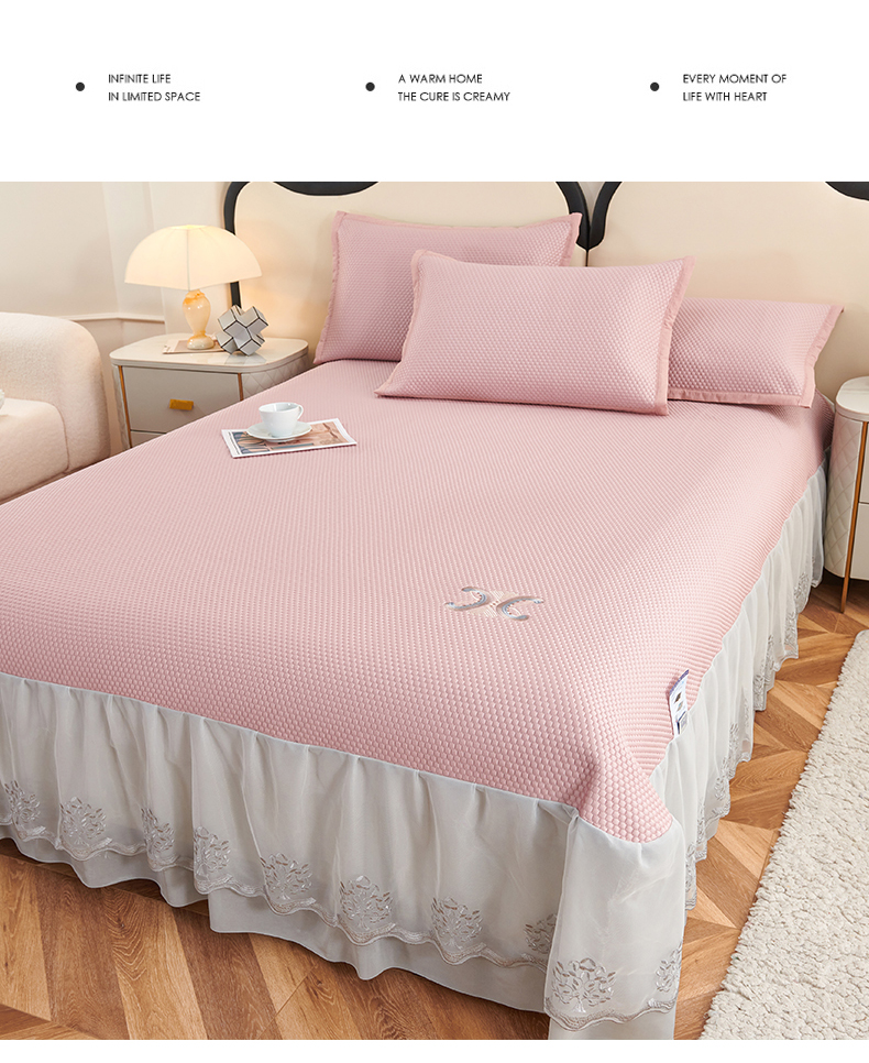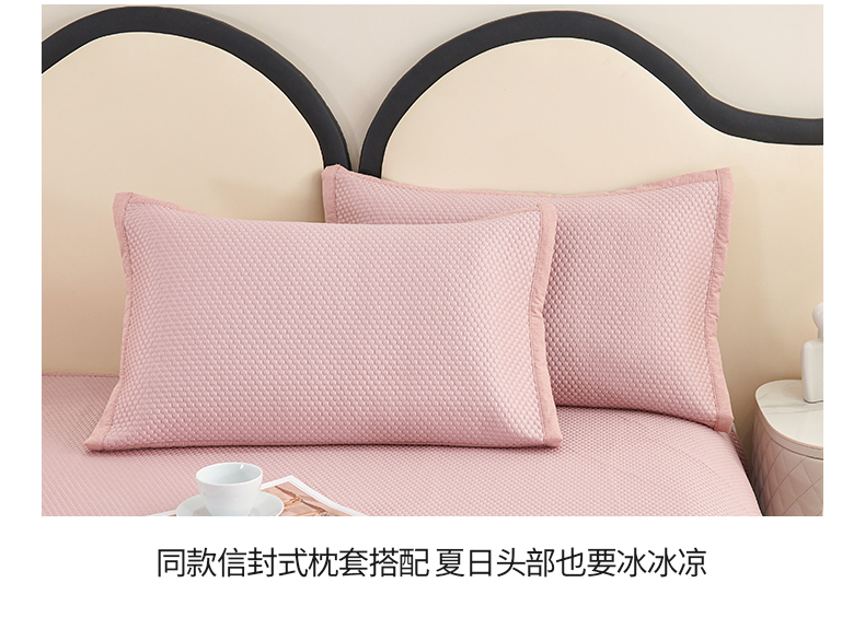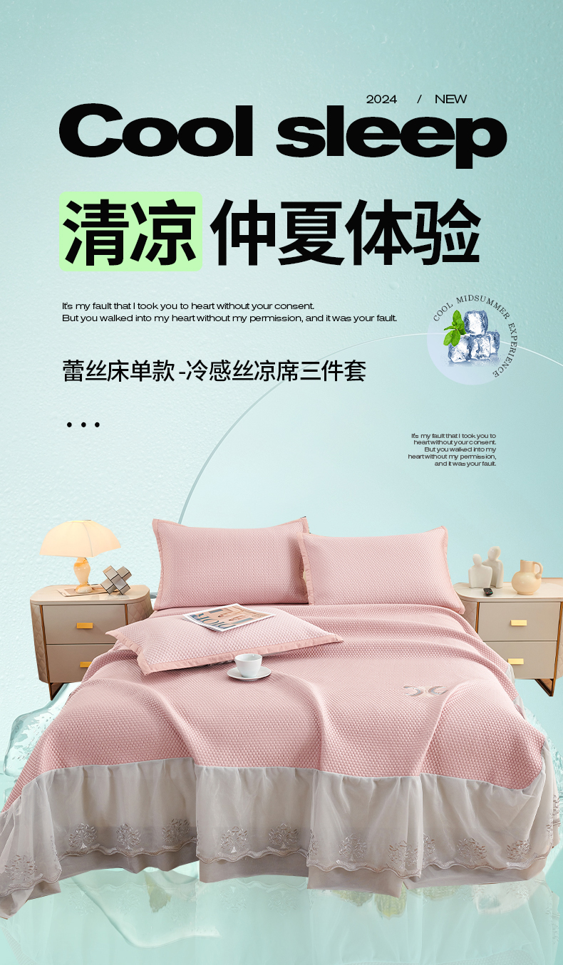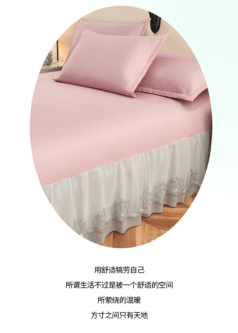 商品名称:宜派家纺 2024新款雪花冷感席三件套床单式床裙款 凤尾-粉