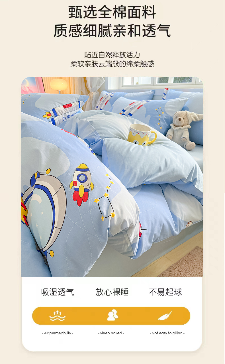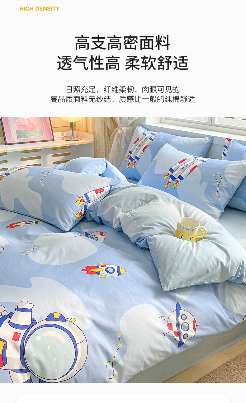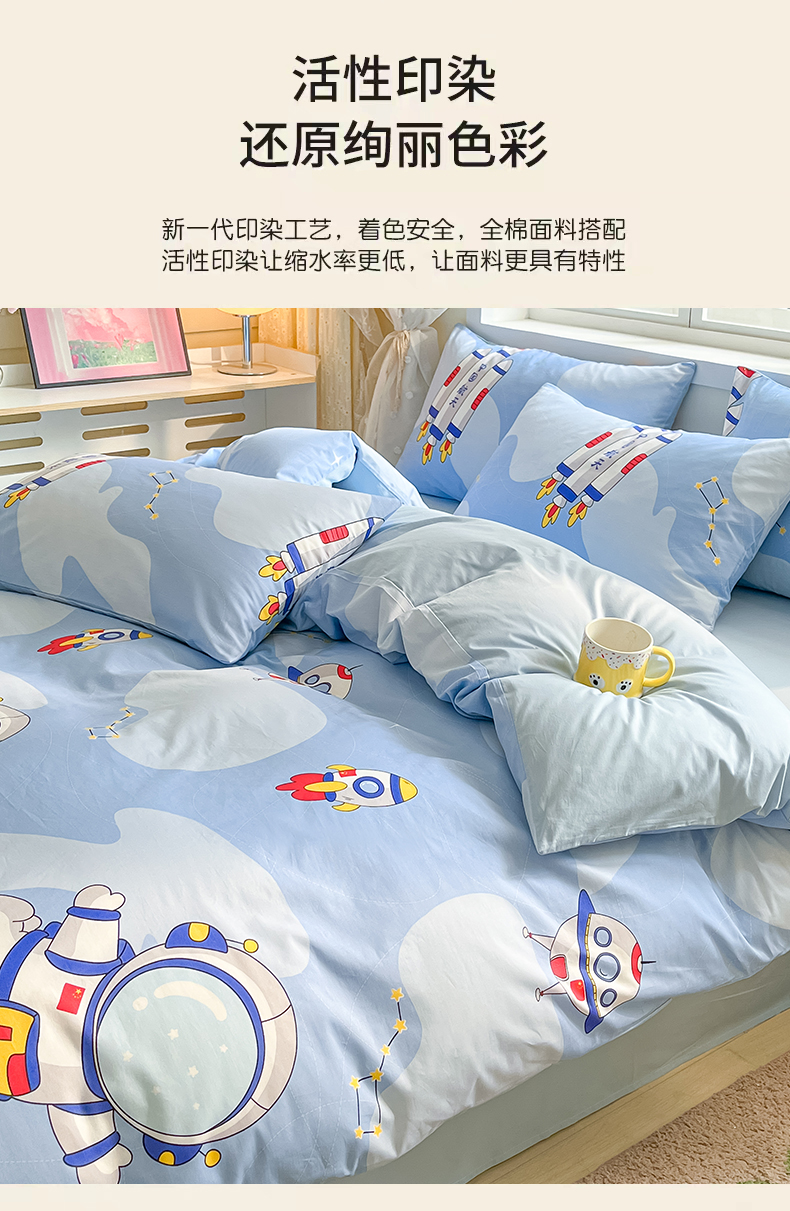 商品名称:金鑫汇家纺 2024新款全棉纯棉卡通印花四件套单品系列-单被套 星际穿越