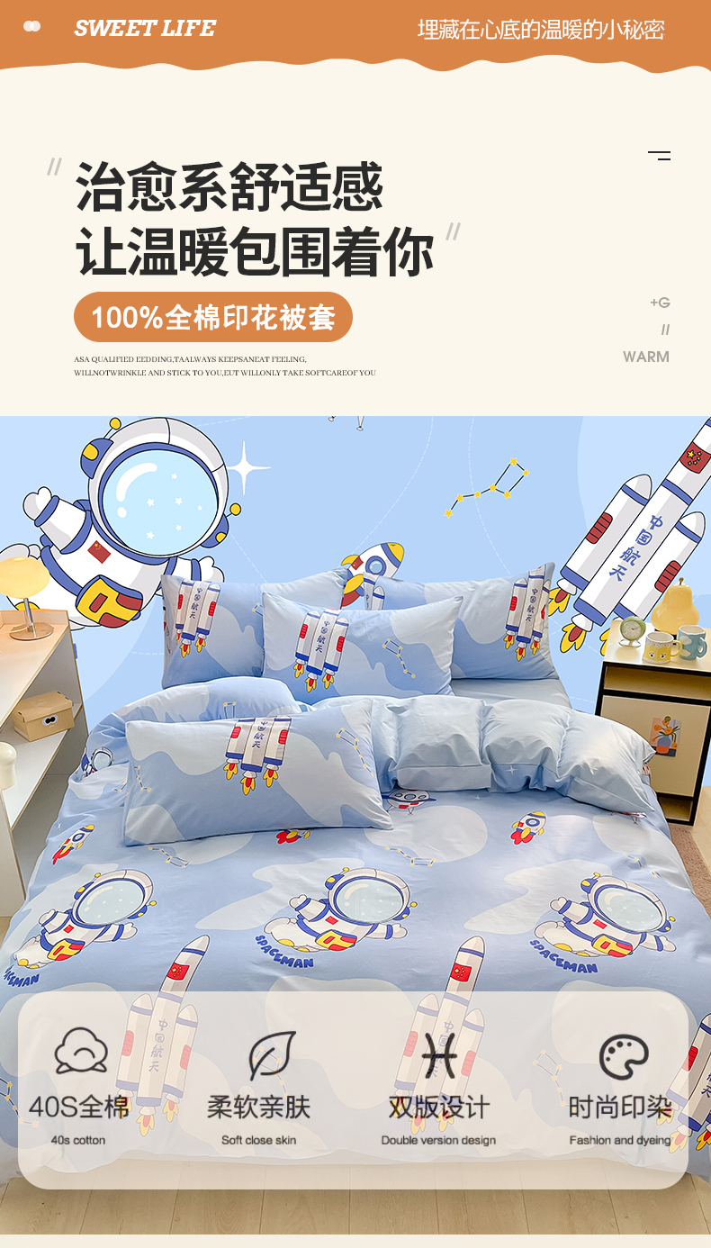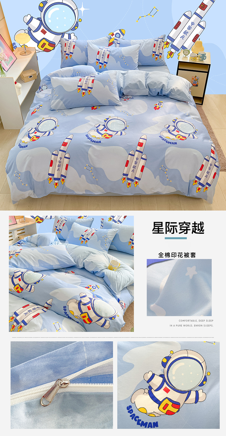 金鑫汇家纺 2024新款全棉纯棉卡通印花四件套单品系列-单被套 星际穿越