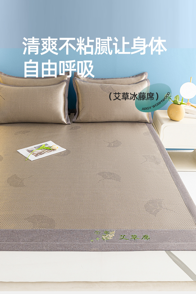 当前位置: 91家纺网 > 商品网购 > 床上用品 > 凉席 > 藤席 > 席佬大 2025新款香薰·艾草冰藤席三件套系列 杏叶香槟-床席款
