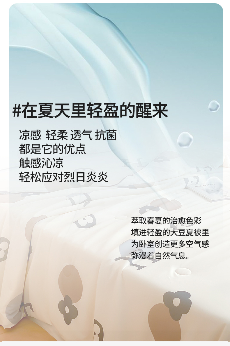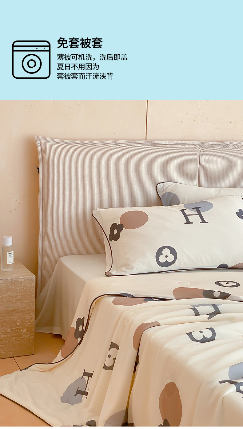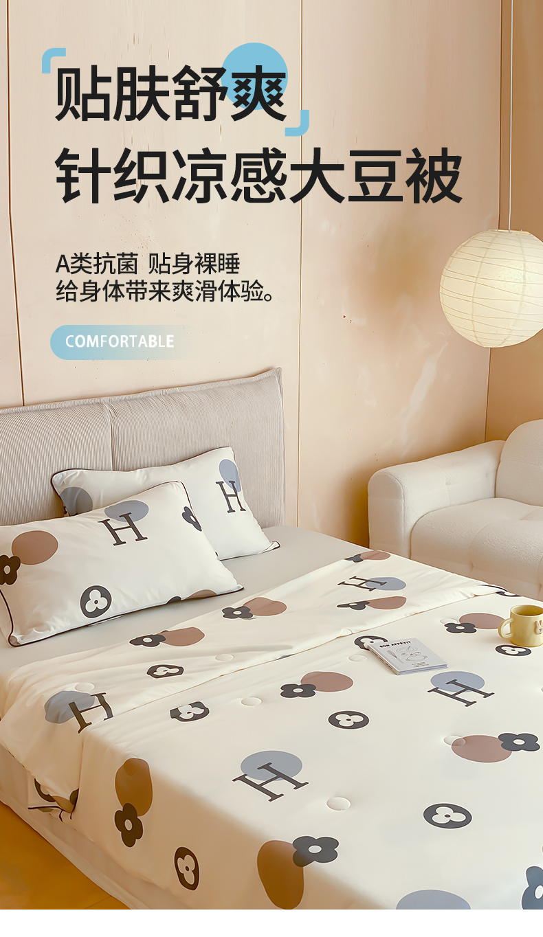 商品名称:头等舱 2025新款针织棉凉感氨纶A类印华大豆抗菌夏被 时尚