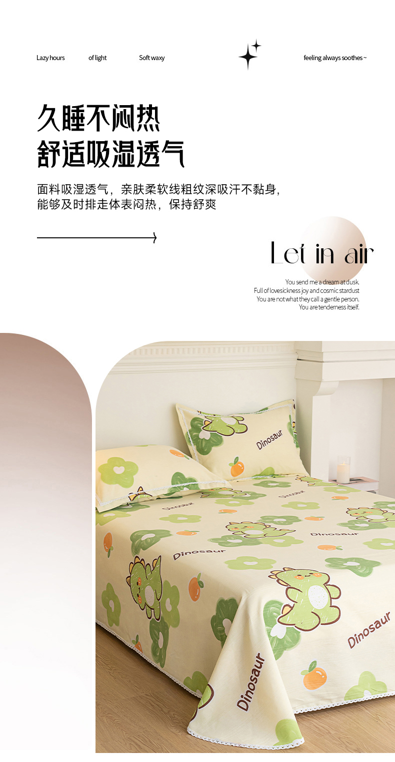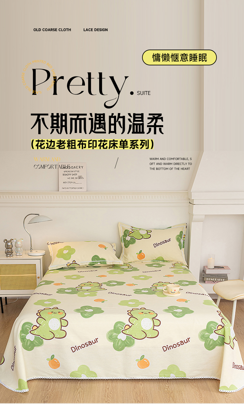 金泰莱 2025新款花边款老粗布凉席老粗布床单软凉席全棉床单纯棉床单 超级恐龙