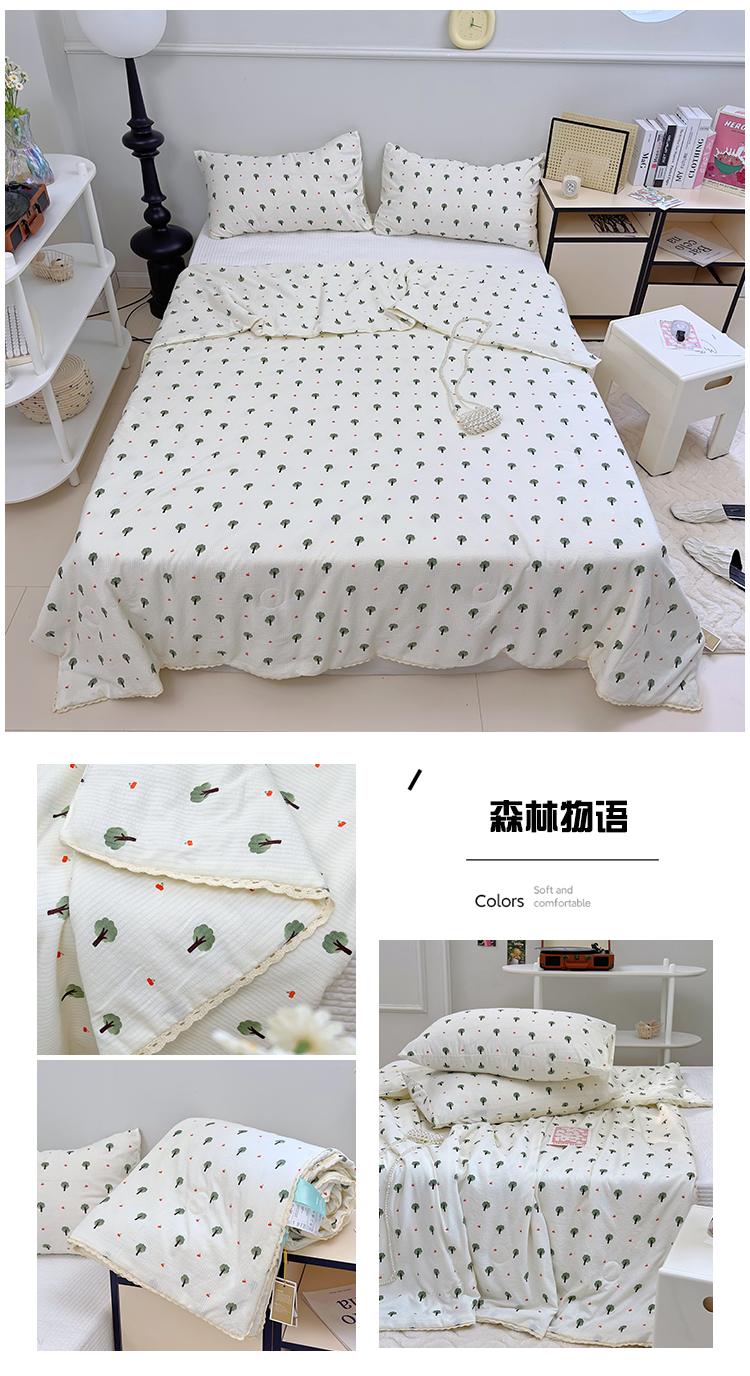 商品名称:塔塔 云朵皱皱棉小花边夏被 森林物语