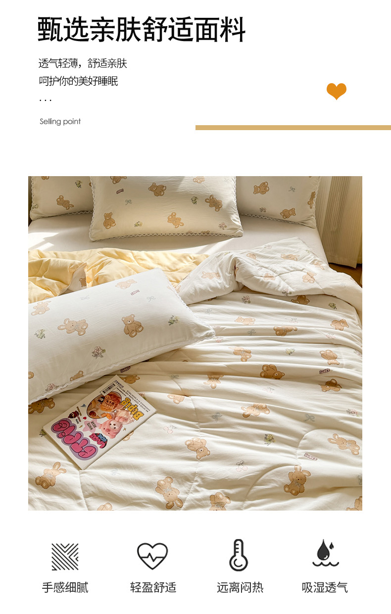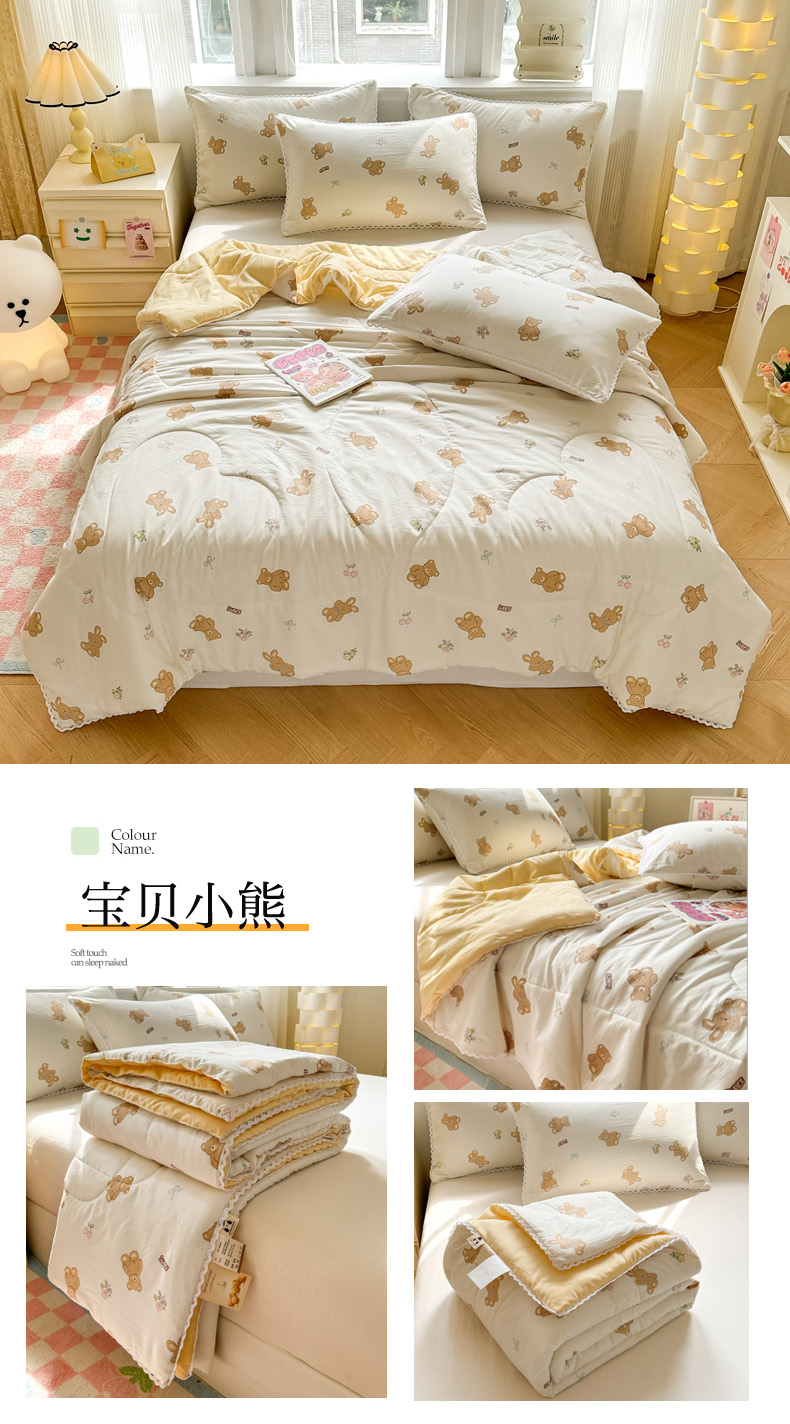 商品名称:慕尚家纺2025新款双层纱水洗夏被子被芯 宝贝小熊
