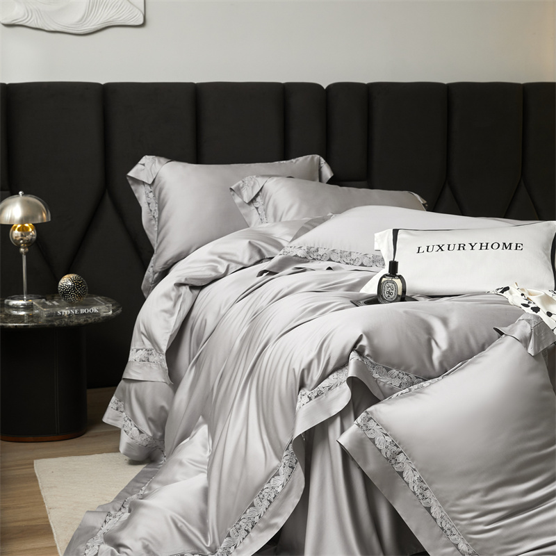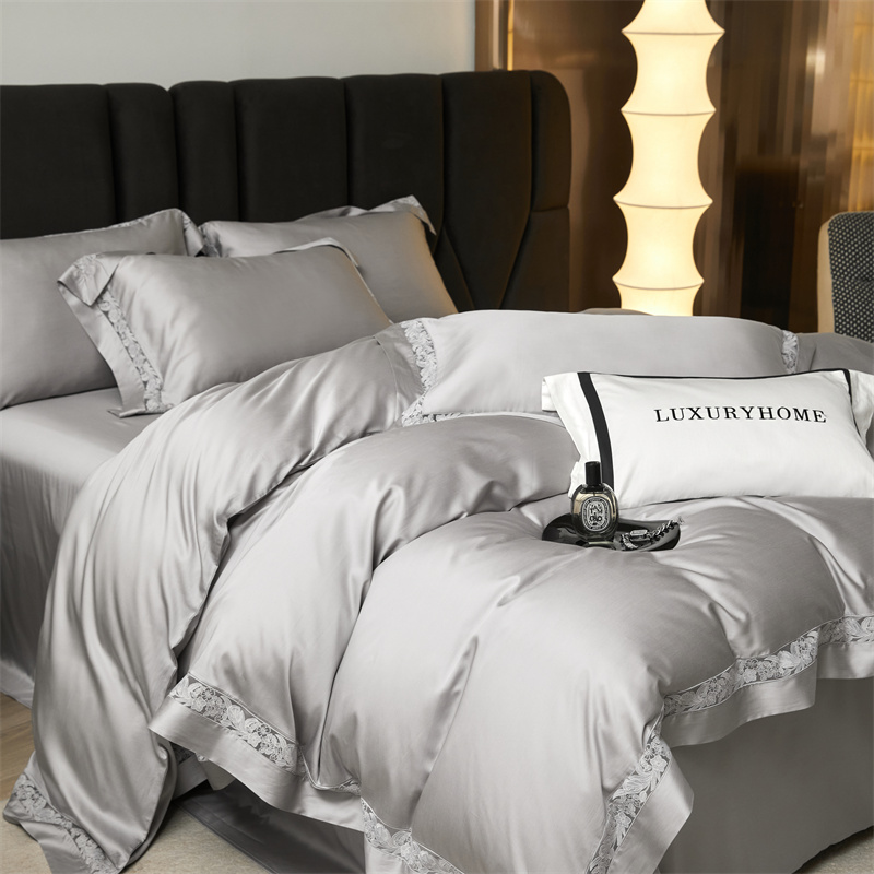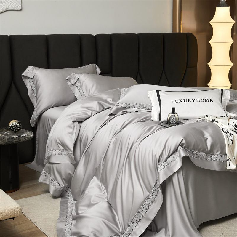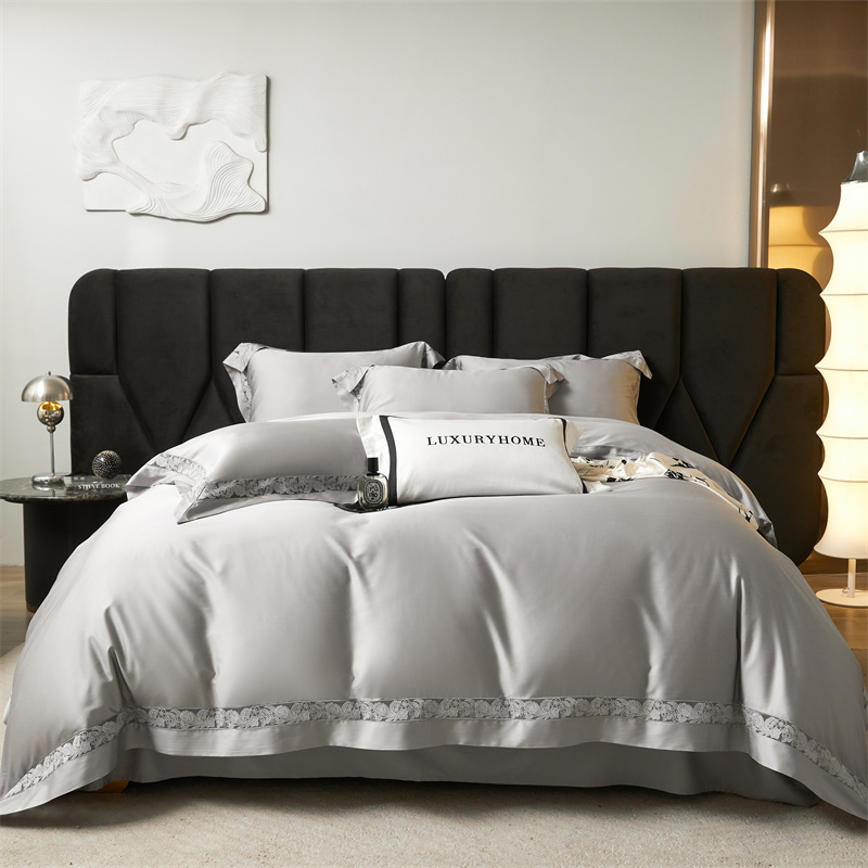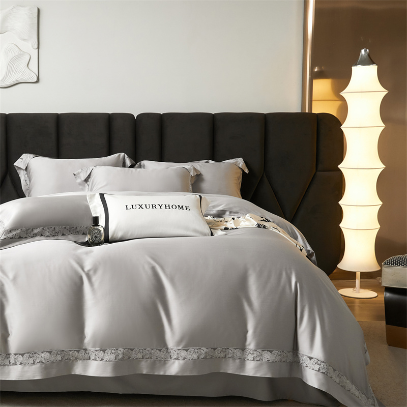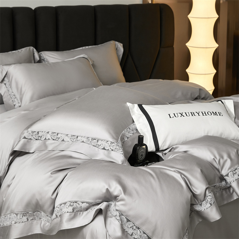 时忆 2024新款100支天丝棉镂空四件套 柏林 雾灰