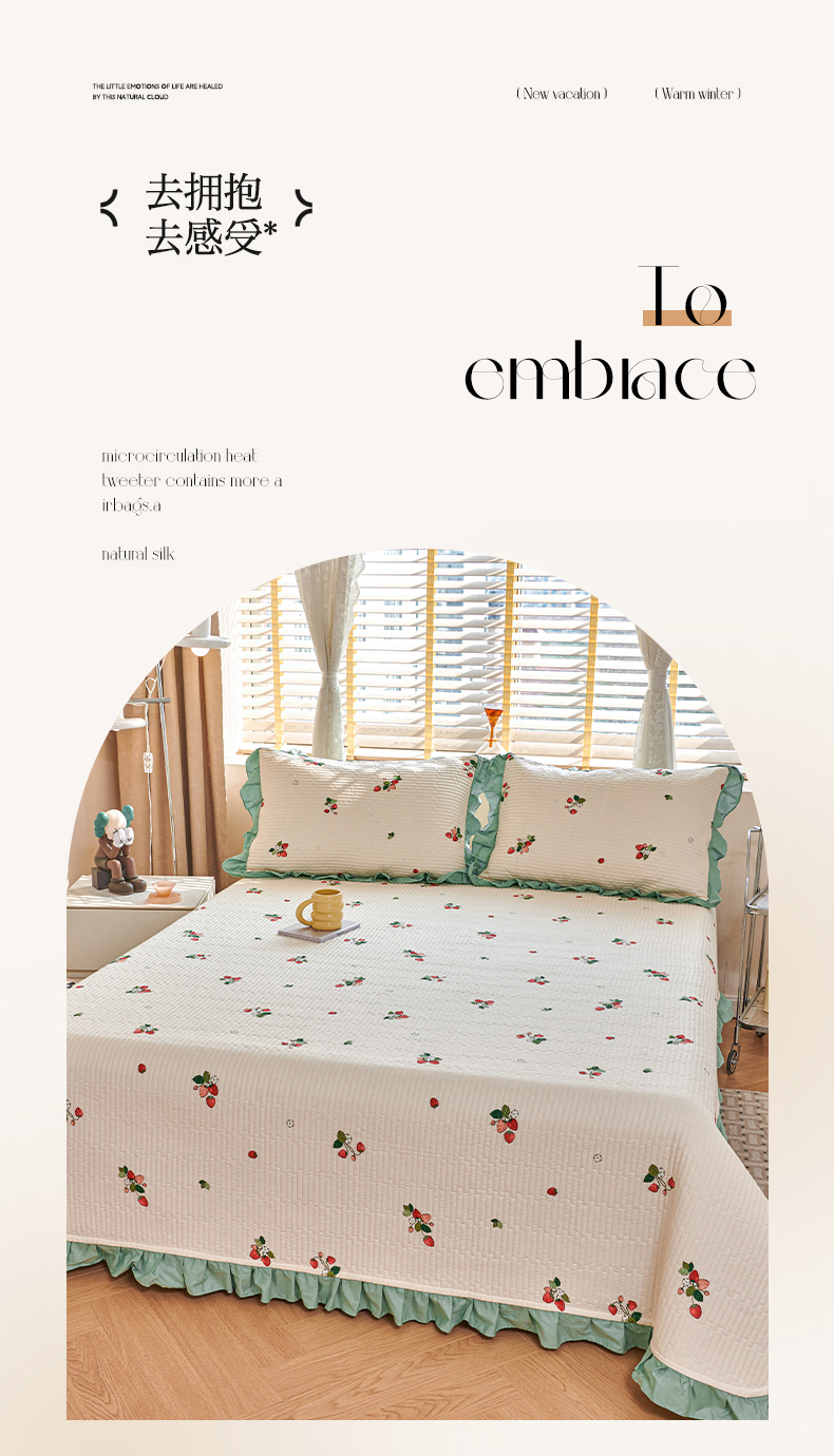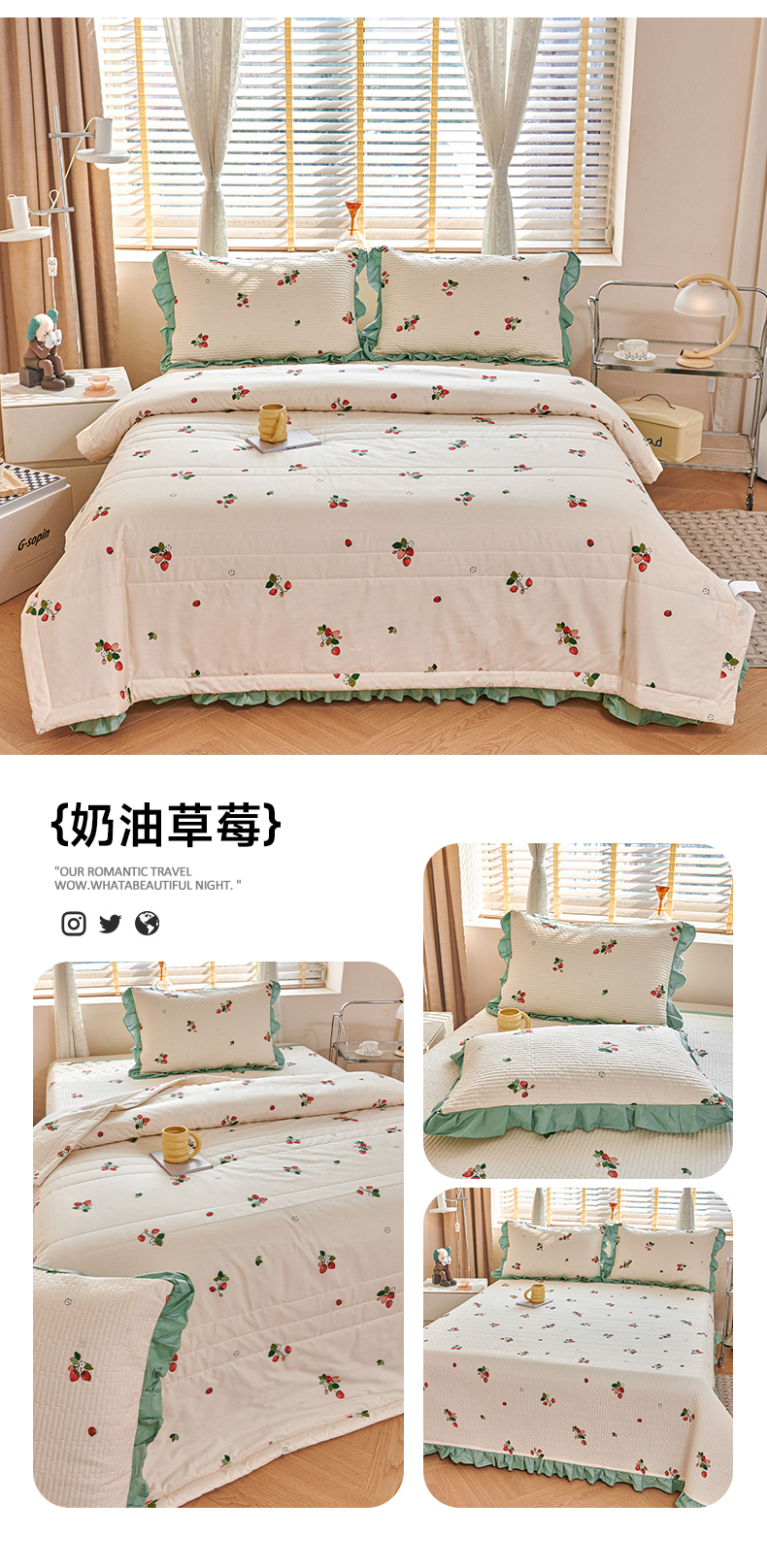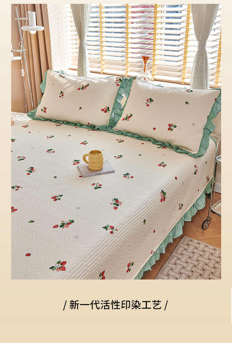 当前位置: 91家纺网 > 商品网购 > 床品套件 > 四件套 > 其它四件套 > 金帛坊 2024新款全棉床盖夏被四件套 奶油草莓