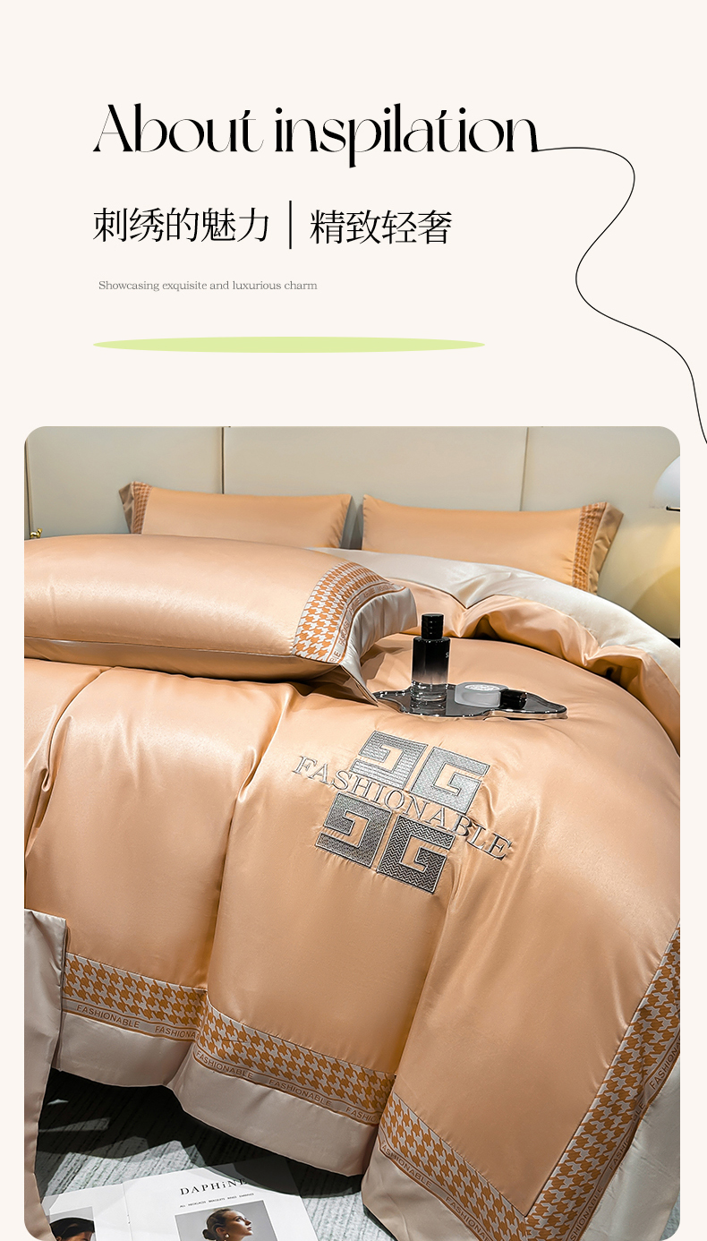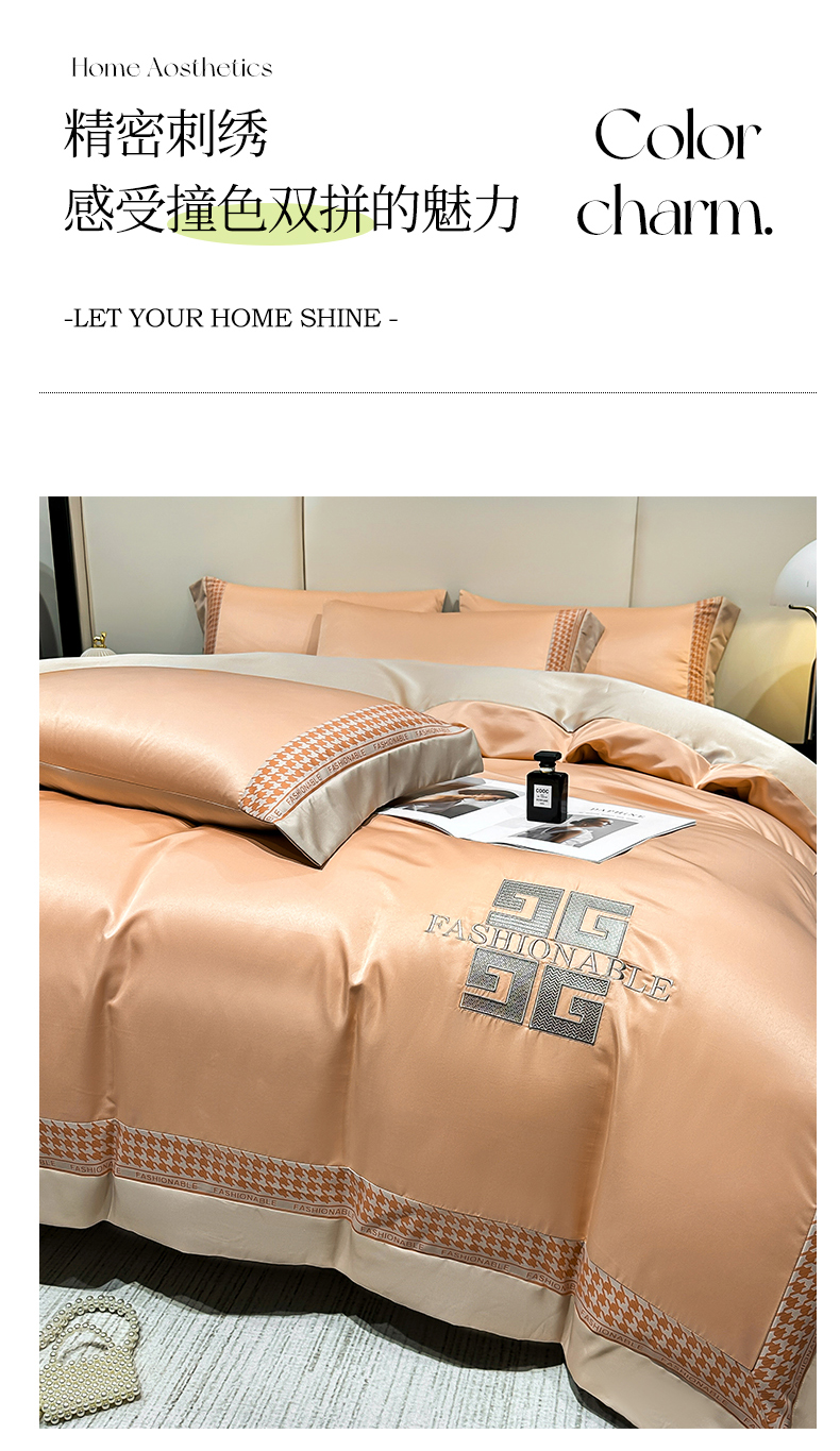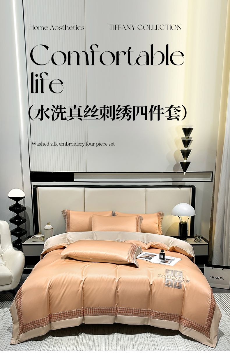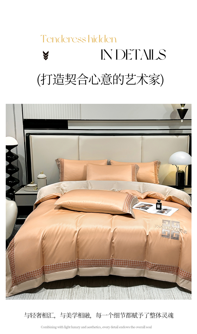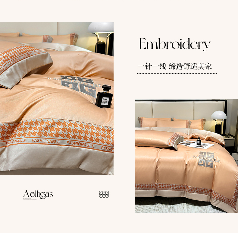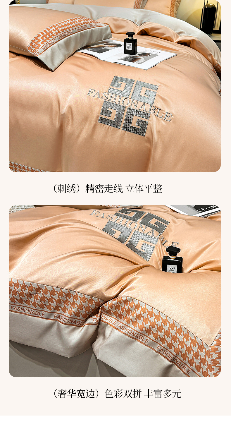 富盛家纺 2024新款水洗真丝刺绣四件套-威灵顿 威灵顿—橘色