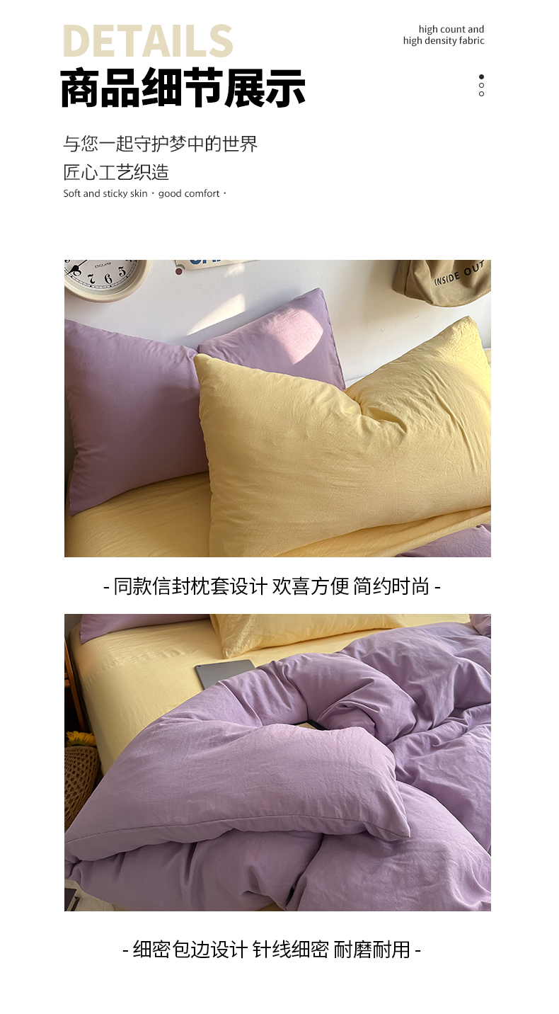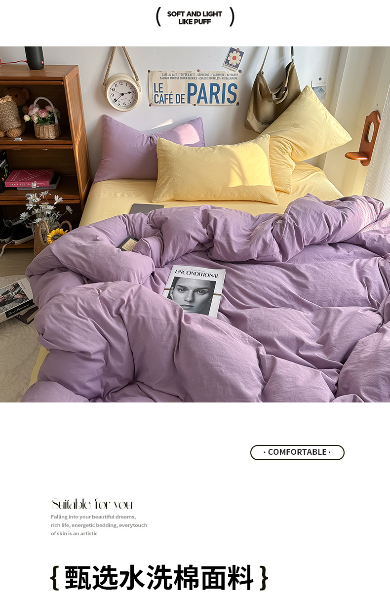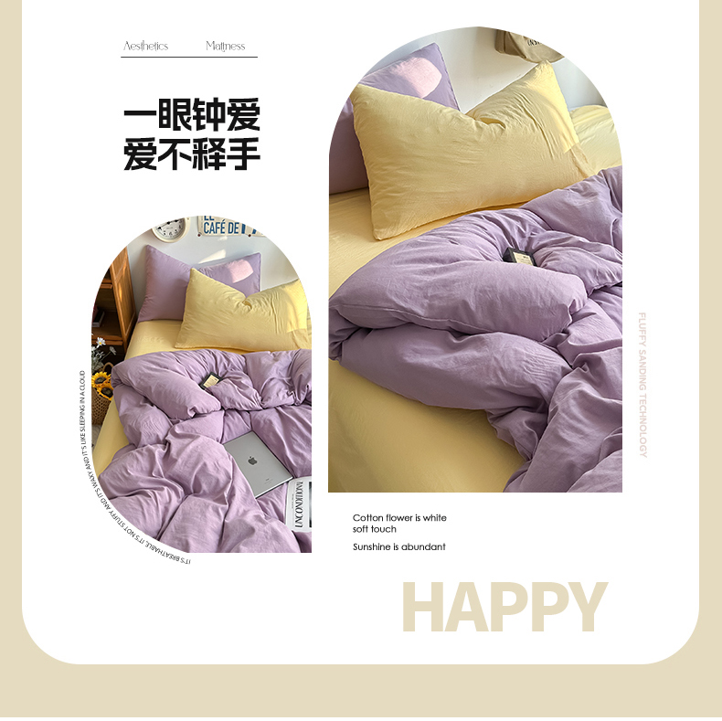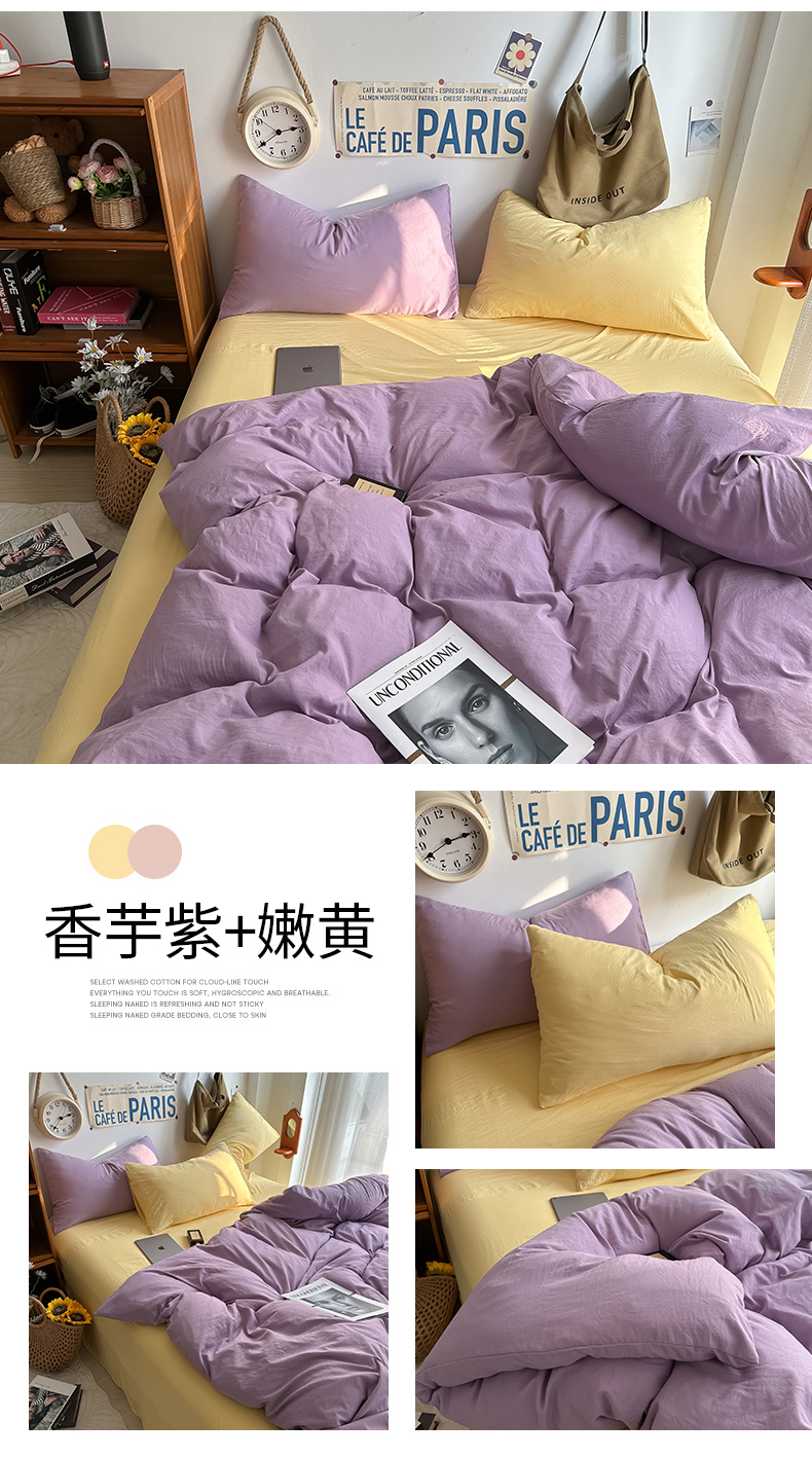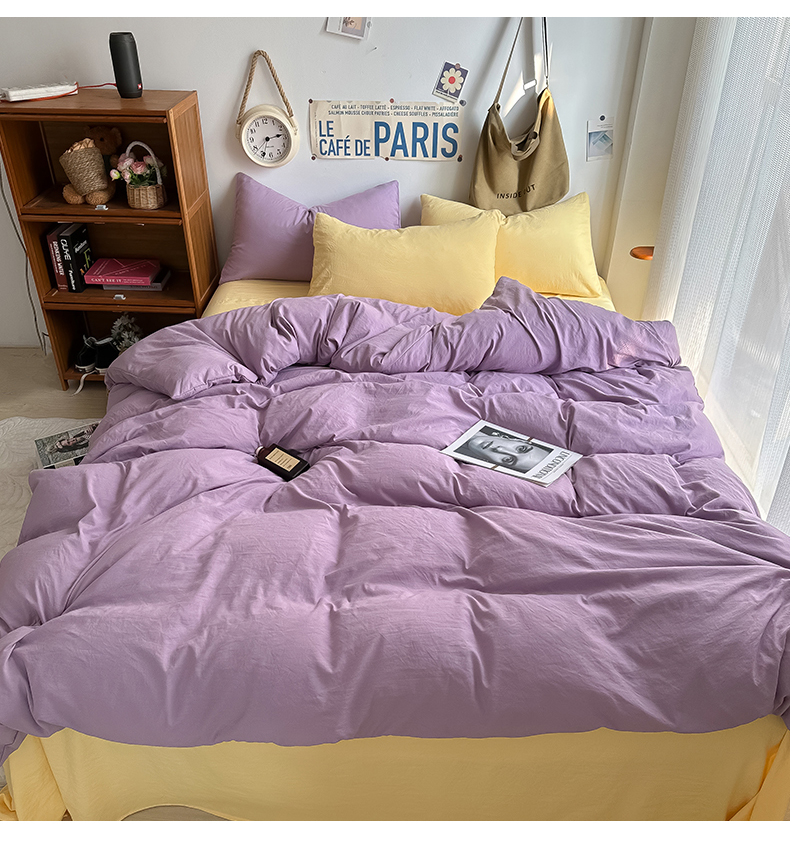 当前位置: 91家纺网 > 商品网购 > 床品套件 > 四件套 > 全棉普通四件套 > 易辰美 2024新款混搭超柔水洗棉四件套 香芋紫+嫩黄
