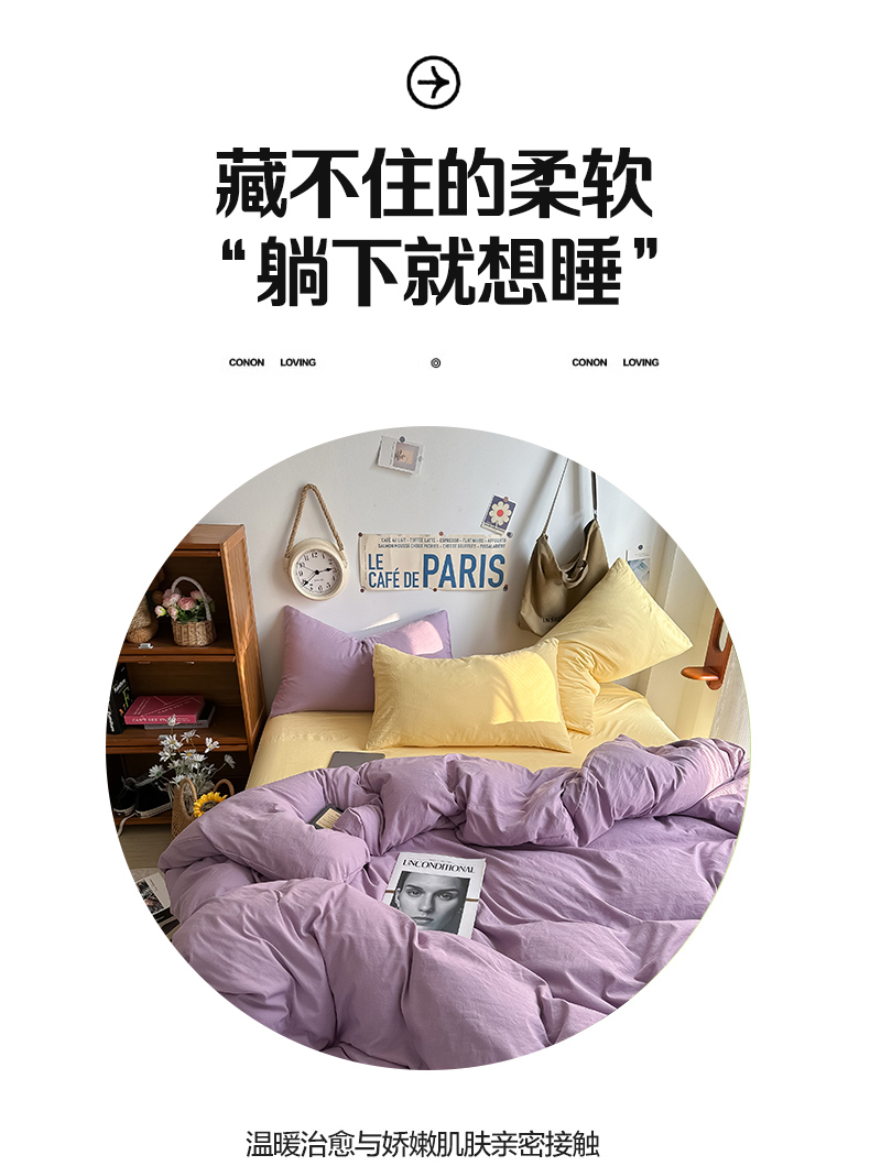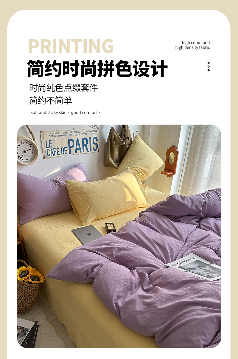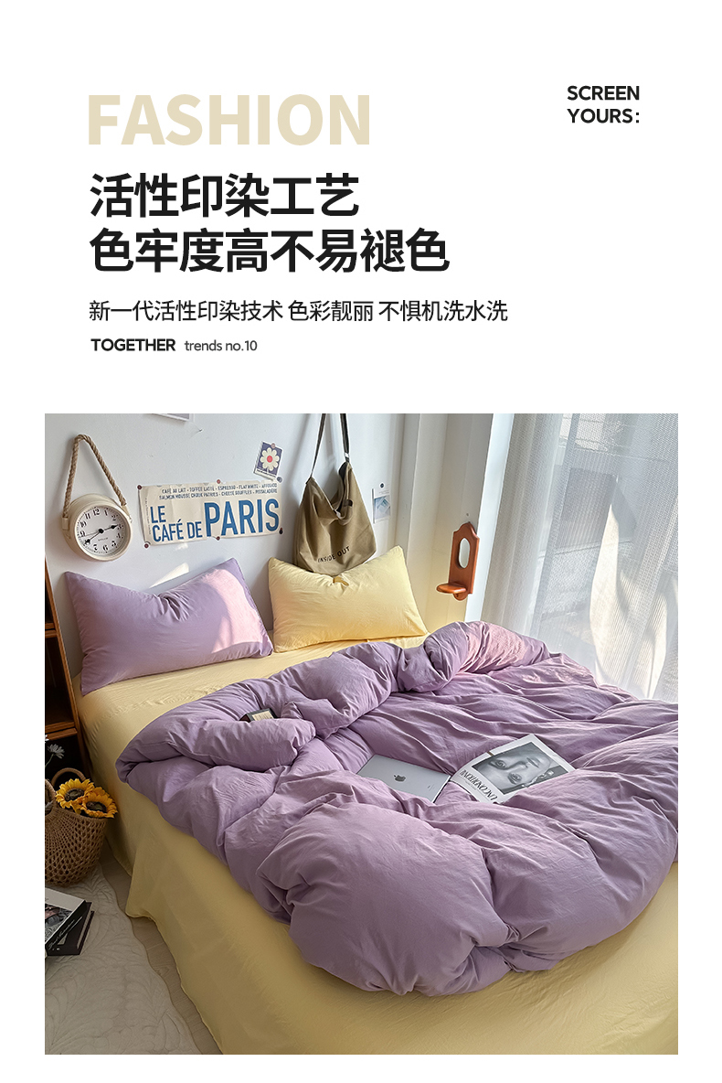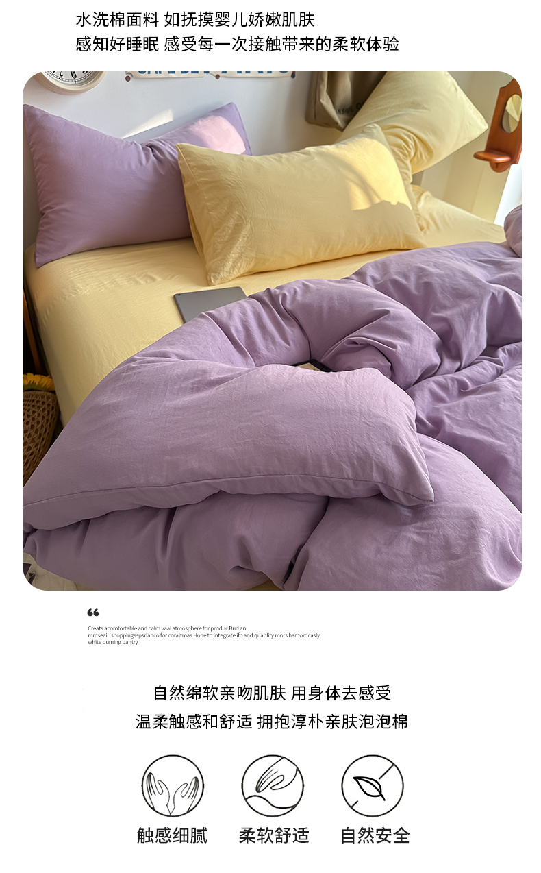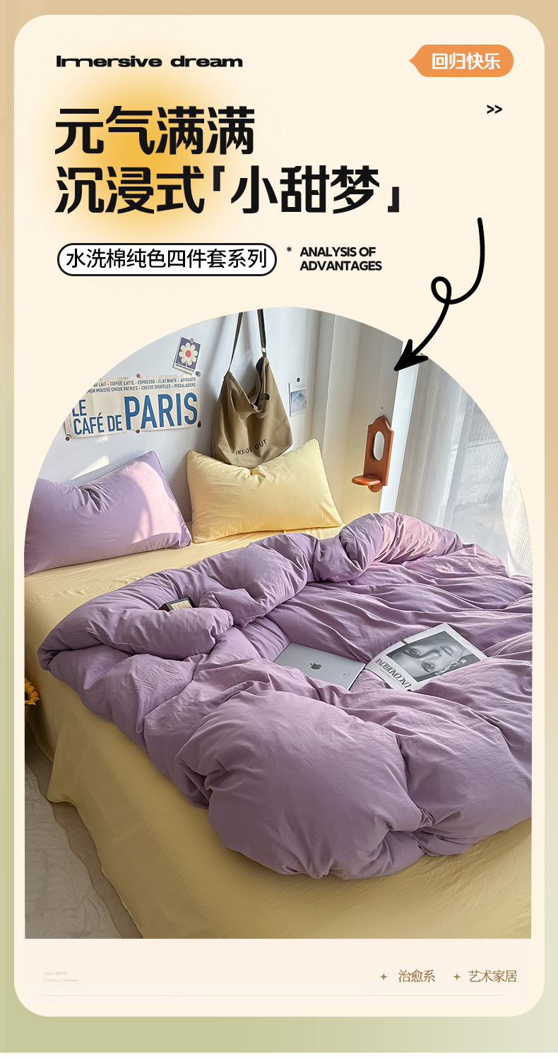 当前位置: 91家纺网 > 商品网购 > 床品套件 > 四件套 > 全棉普通四件套 > 易辰美 2024新款混搭超柔水洗棉四件套 香芋紫+嫩黄
