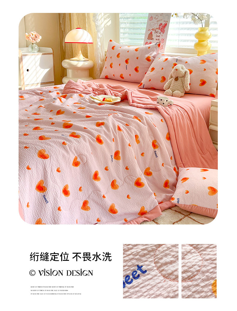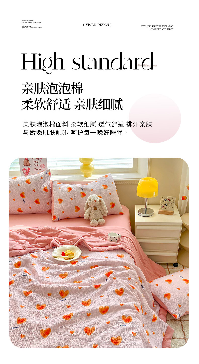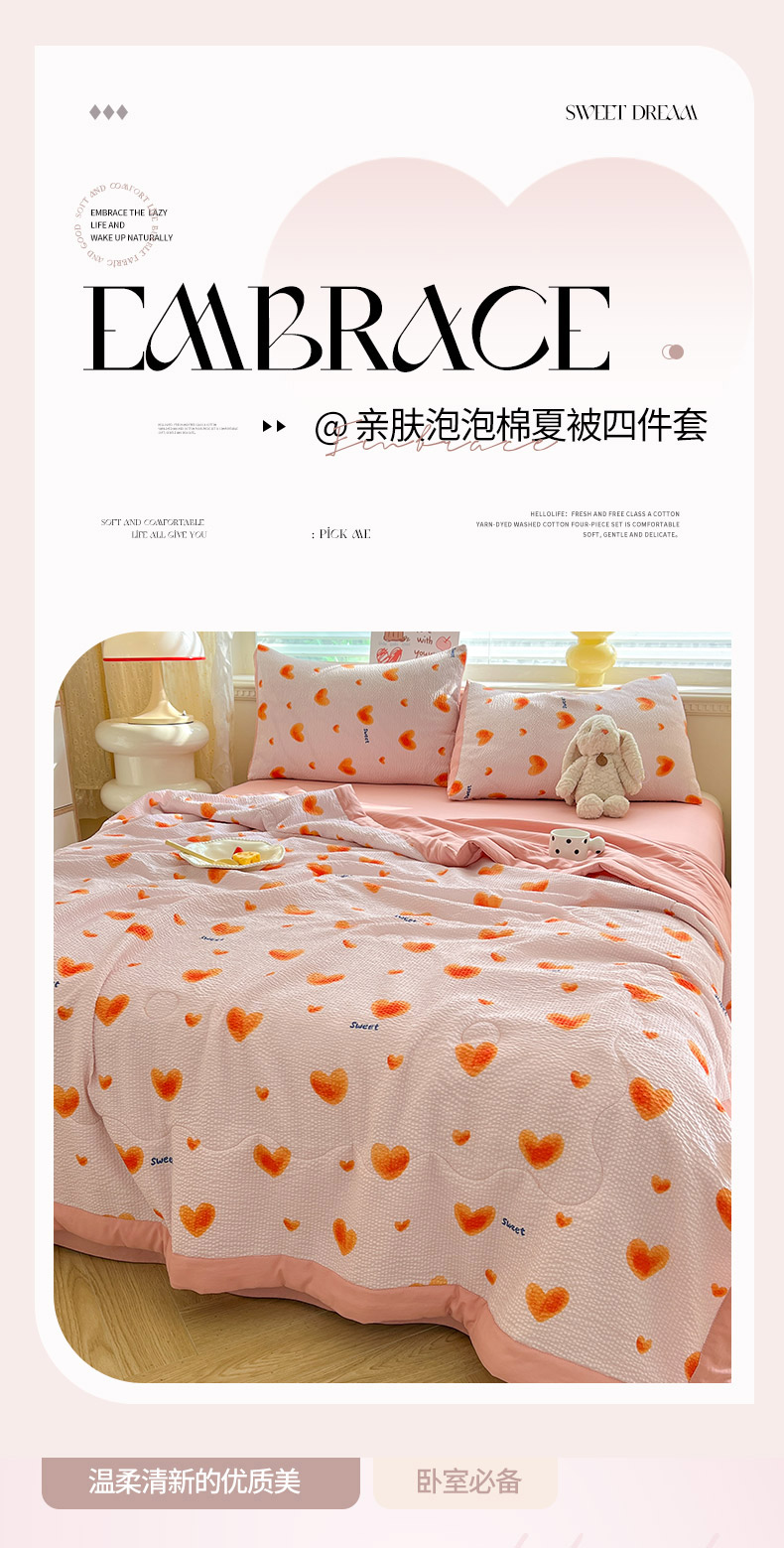 商品名称:妖妖家纺 2024新款有氧水洗泡泡棉印花四套泡芙棉夏被四件套 心动